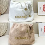 • Chanel 22 Mini Handbag Shearling &Amp Gold Tone Metal White 20Cm/7.9in