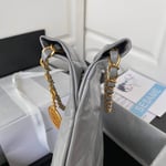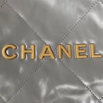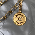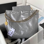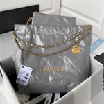 Chanel 22 Small Handbag Shiny Calfskin Grey With logo Gold