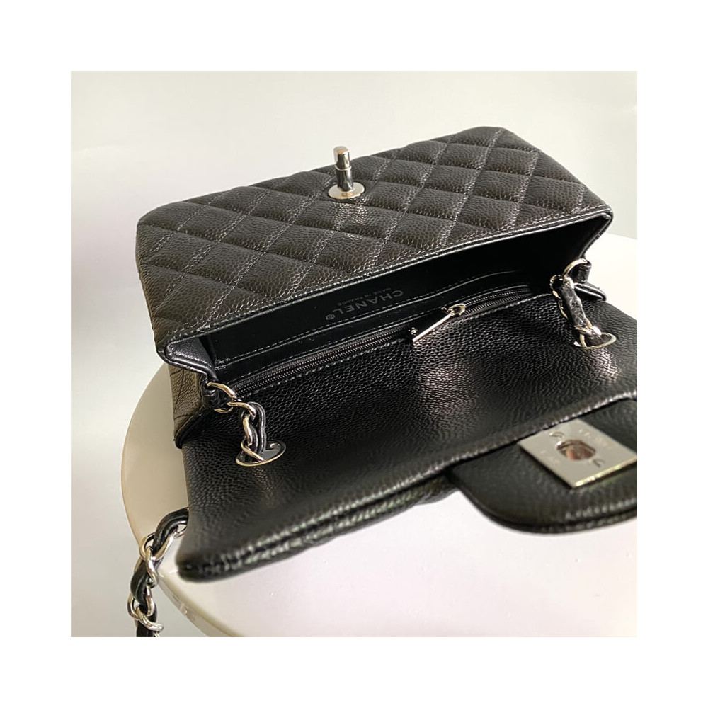 Synonymous with style and needing little introduction, our Chanel mini flap in black is instantly recognisable as the little black bag! An anytime anywhere, chic addition to your outfit and the ultimate finishing touch to the perfect capsule wardrobe.