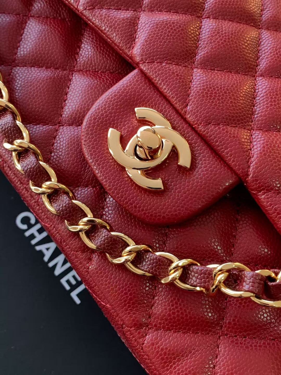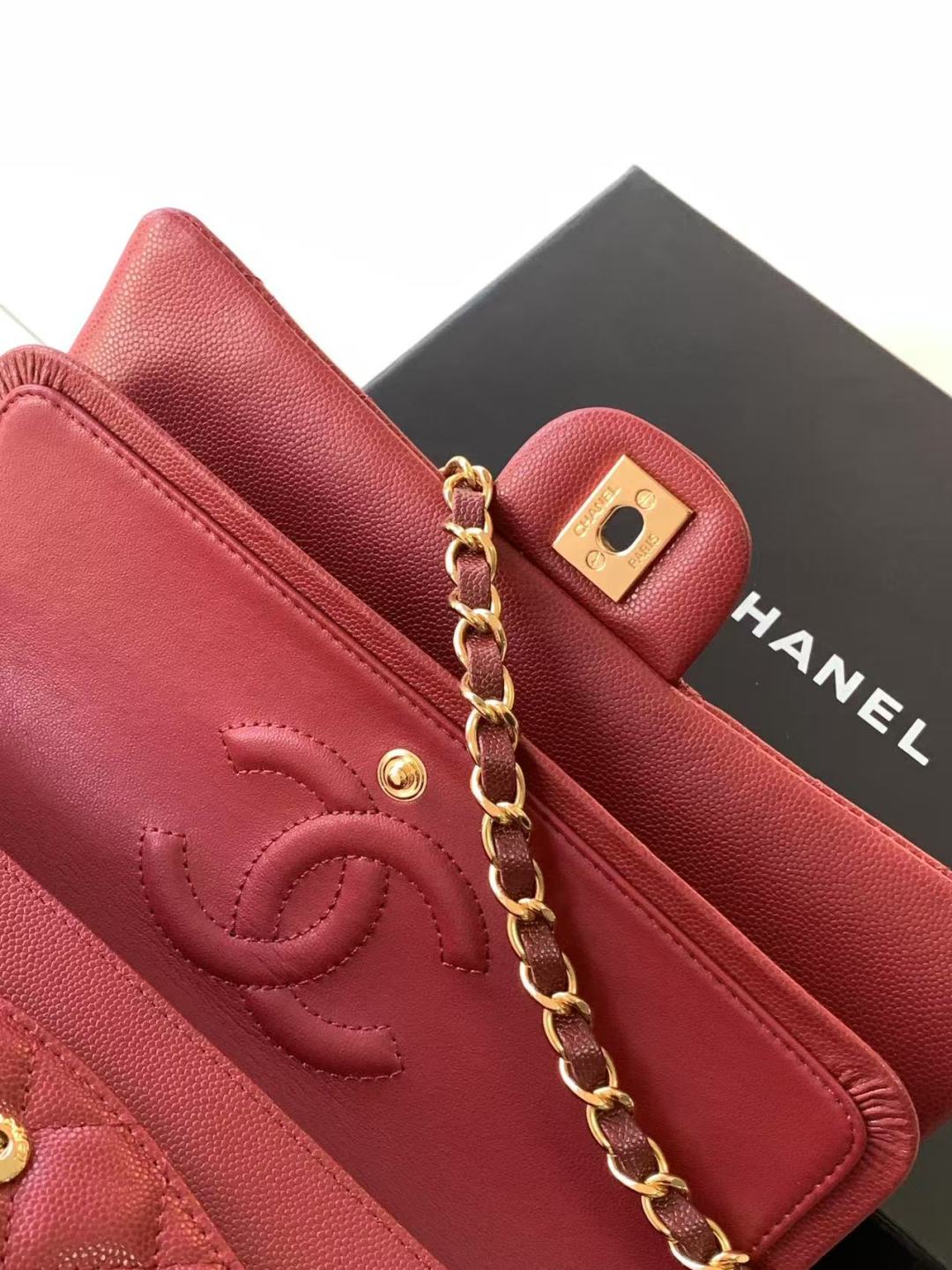 • Chanel Classic Flap Bag 25 cm Red Gold-Tone Hardware A01112