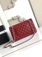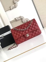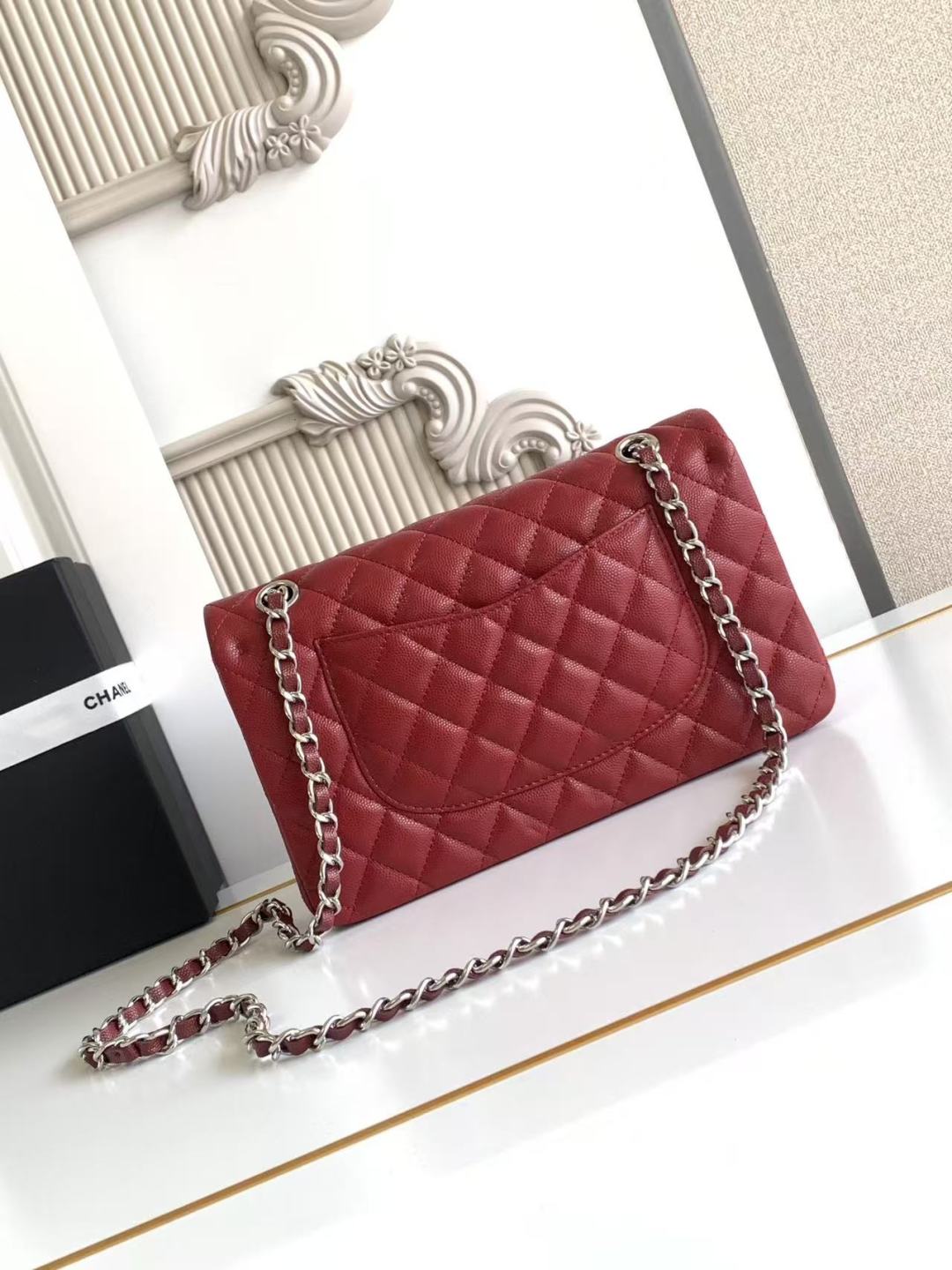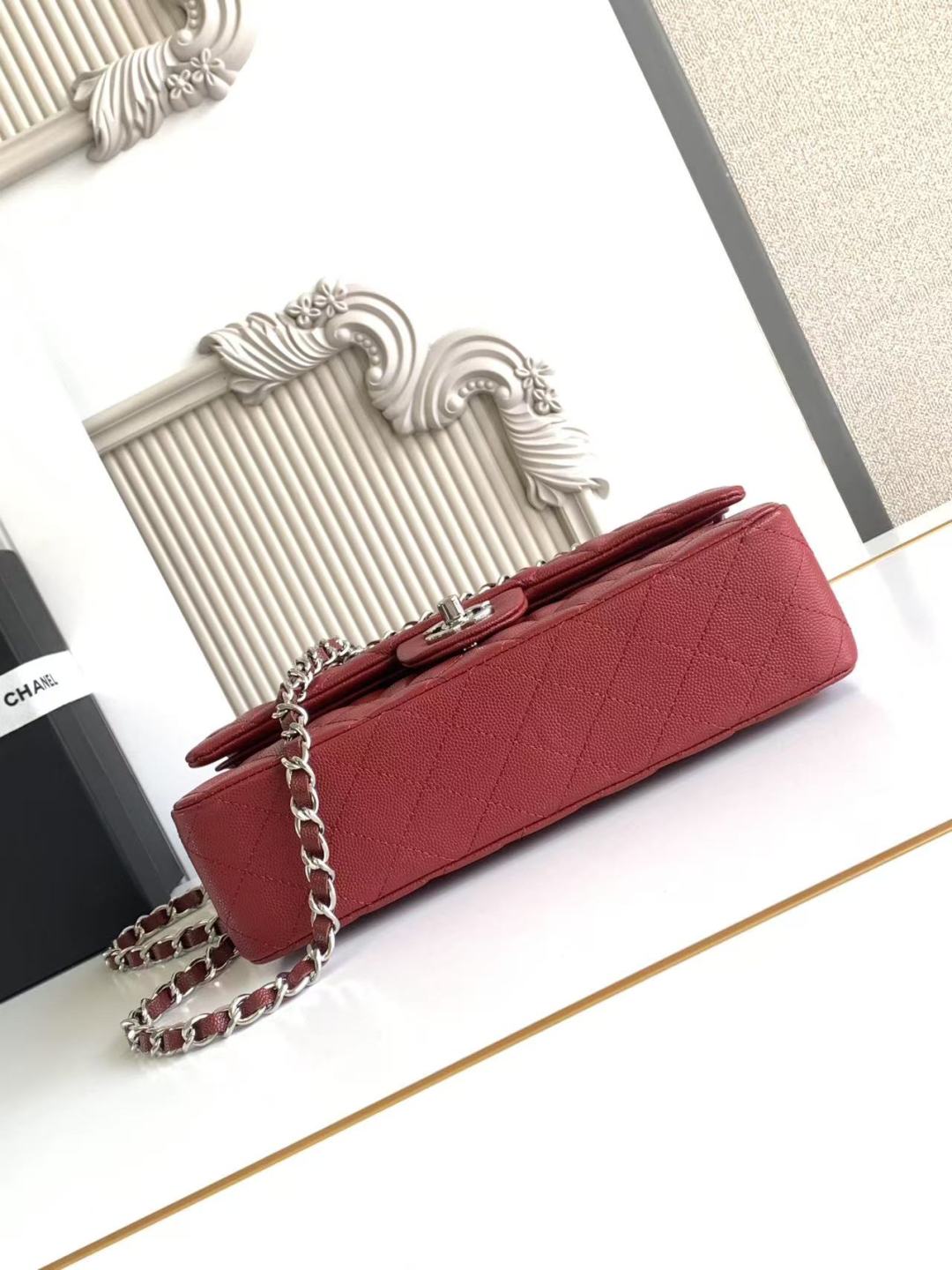 • Chanel Classic Flap Bag 25 cm Red Silver-Tone Hardware A01112