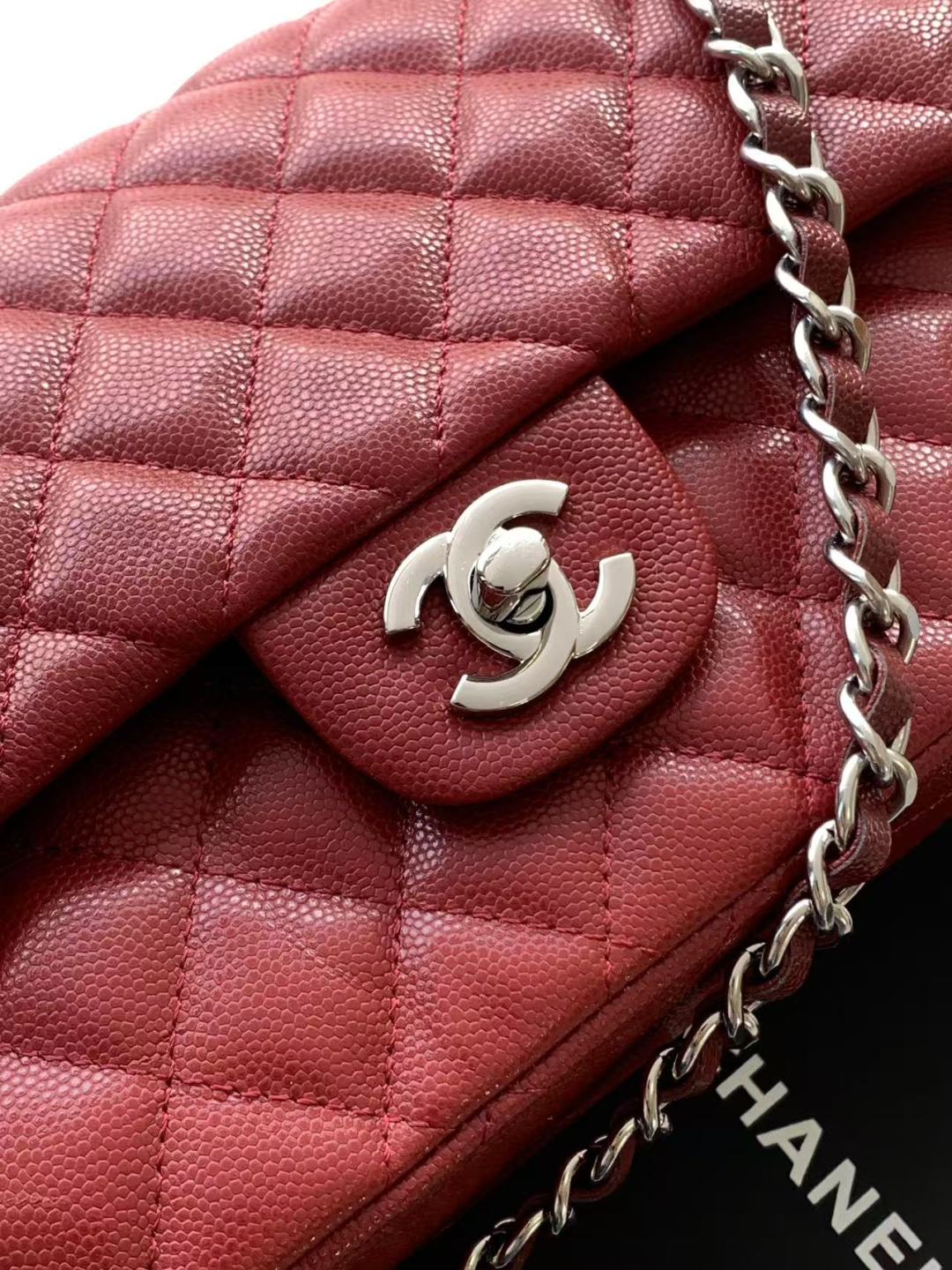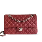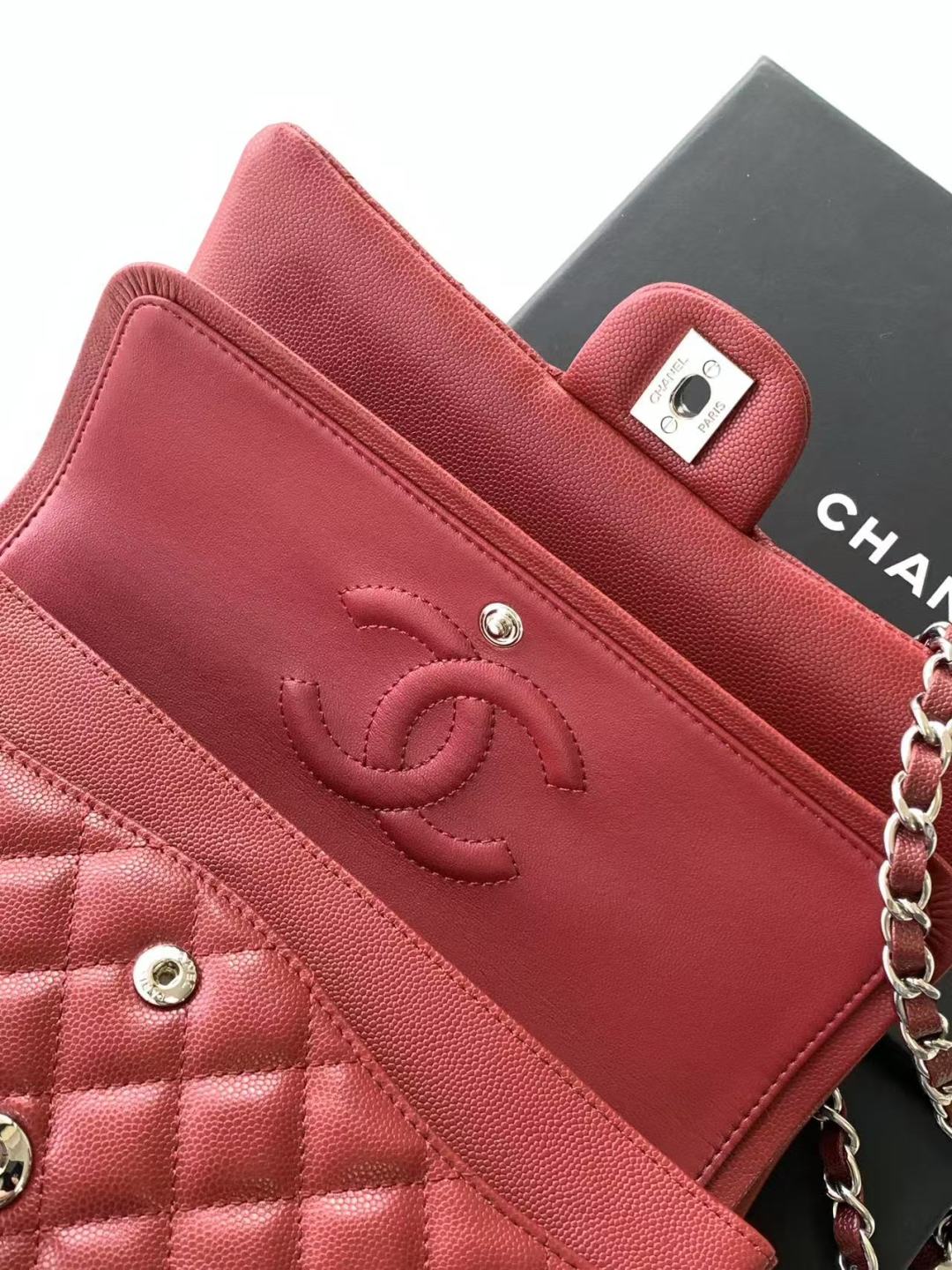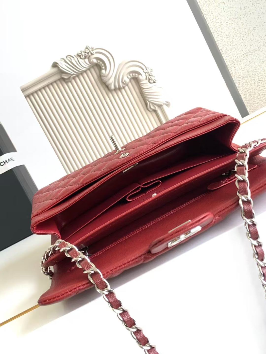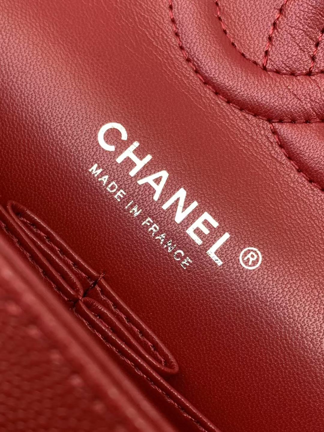 Chanel Classic Flap Bag 25 cm Red Silver-Tone Hardware A01112