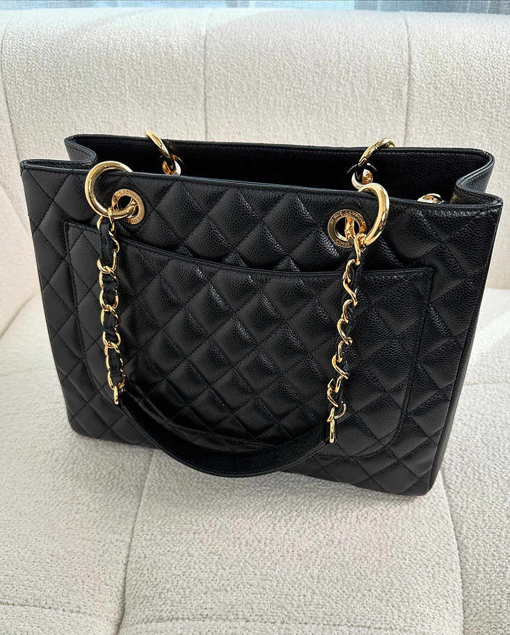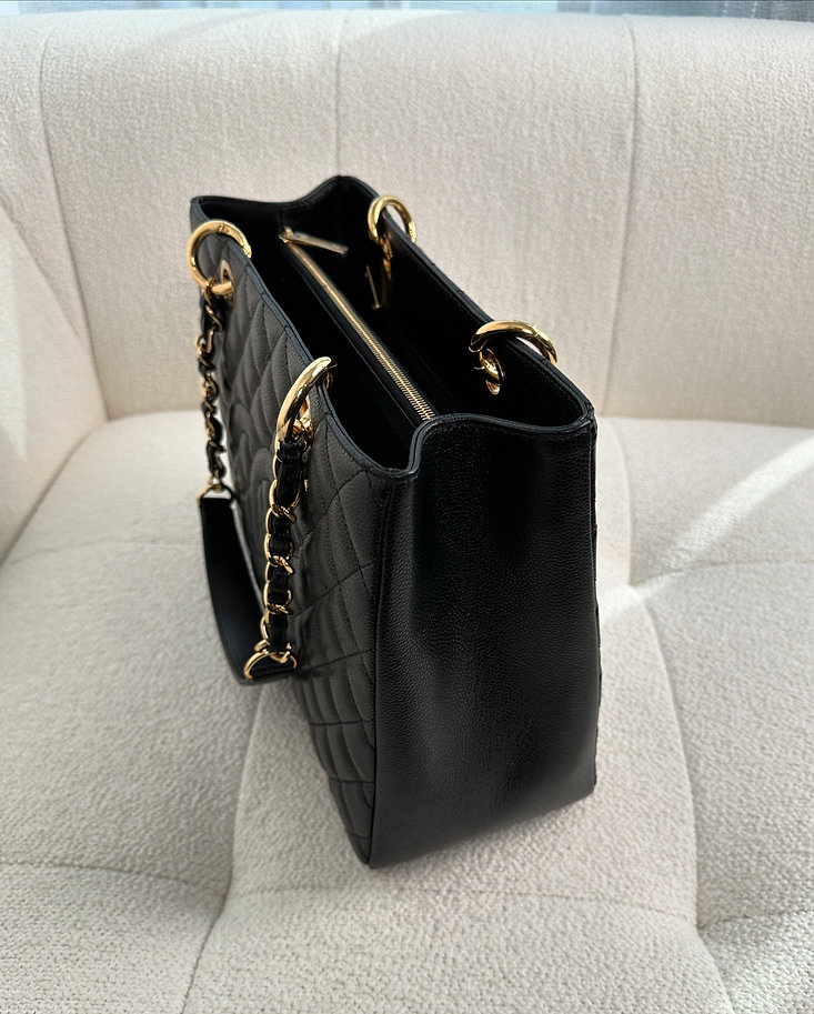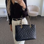 • Chanel Classic Tote Bag Gold Toned Hardware Black 34cm