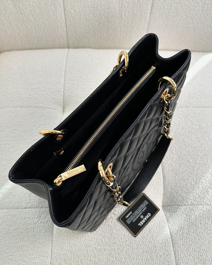 Chanel Classic Tote Bag Gold Toned Hardware Black 34cm