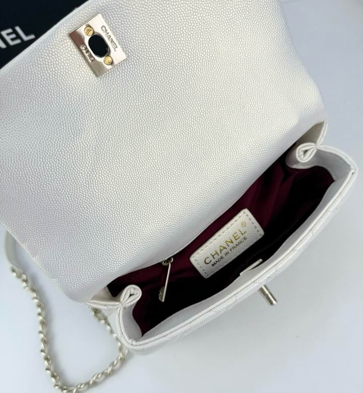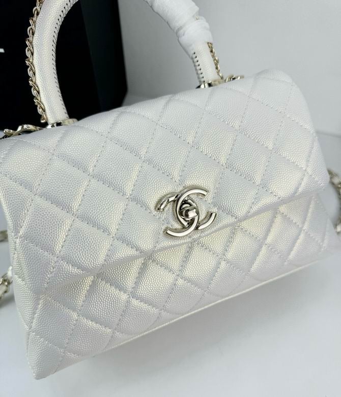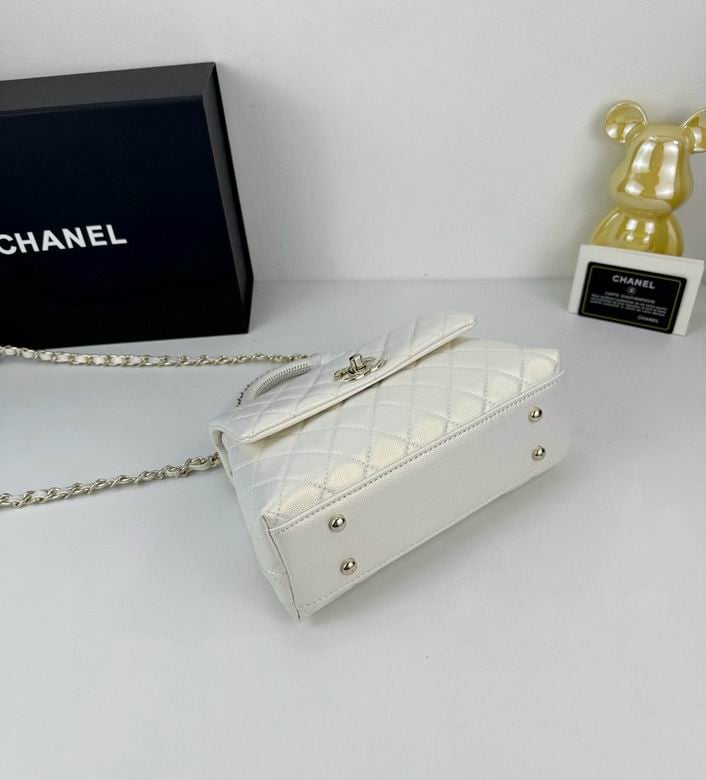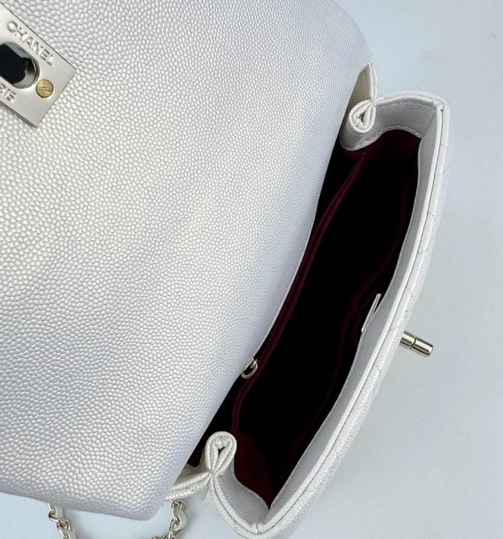 Chanel Coco Classic Flap Bag 24cm/9.4in Caviar Leather Silver Hardware �C White