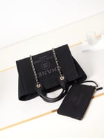 Chanel Deauville Shopping Small Tote Mixed Fabric Calfskin 35Cm Black