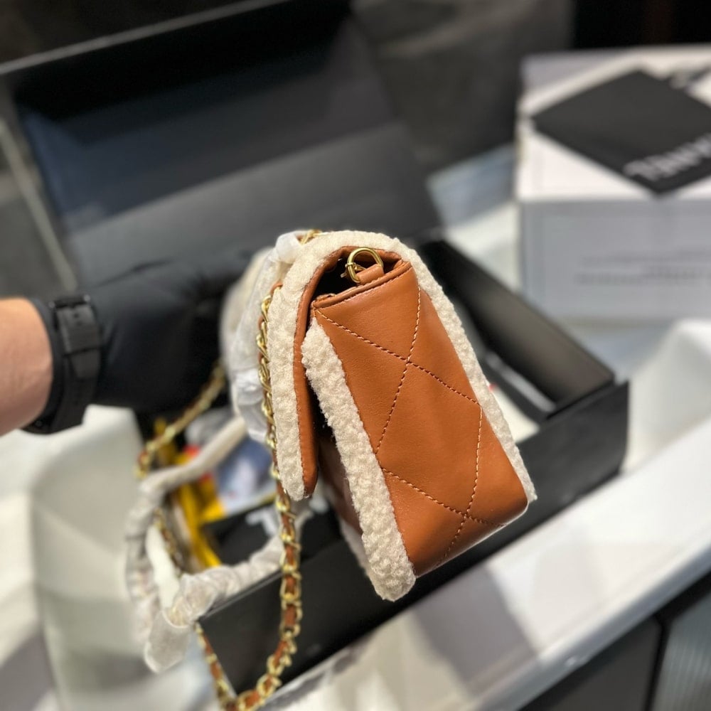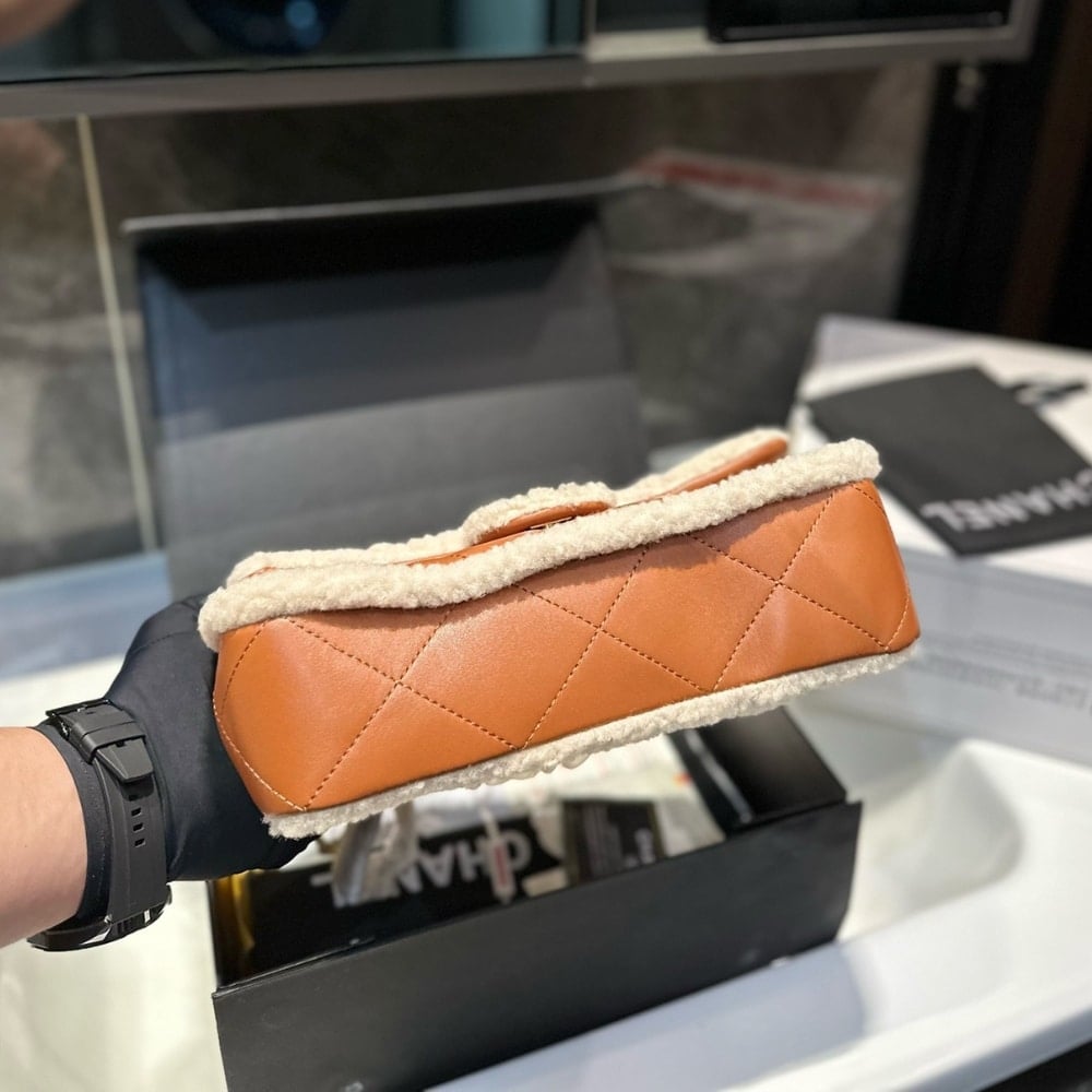 Chanel Flap Bag Shearling Beige And Brown 23Cm