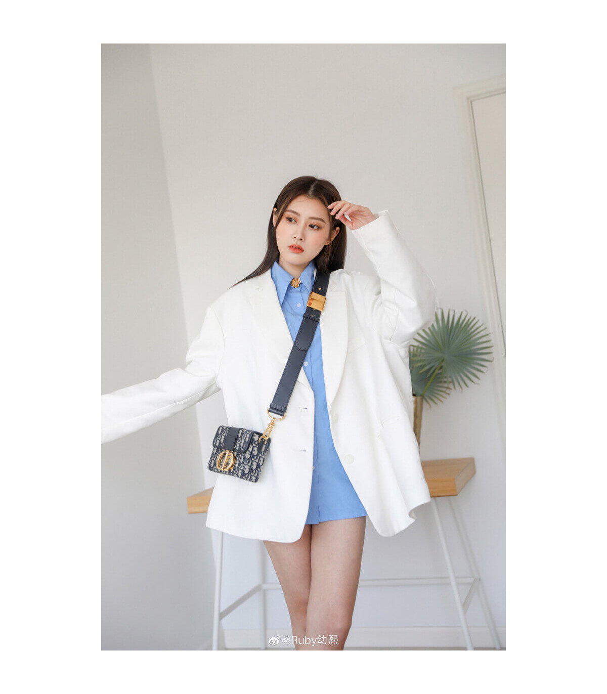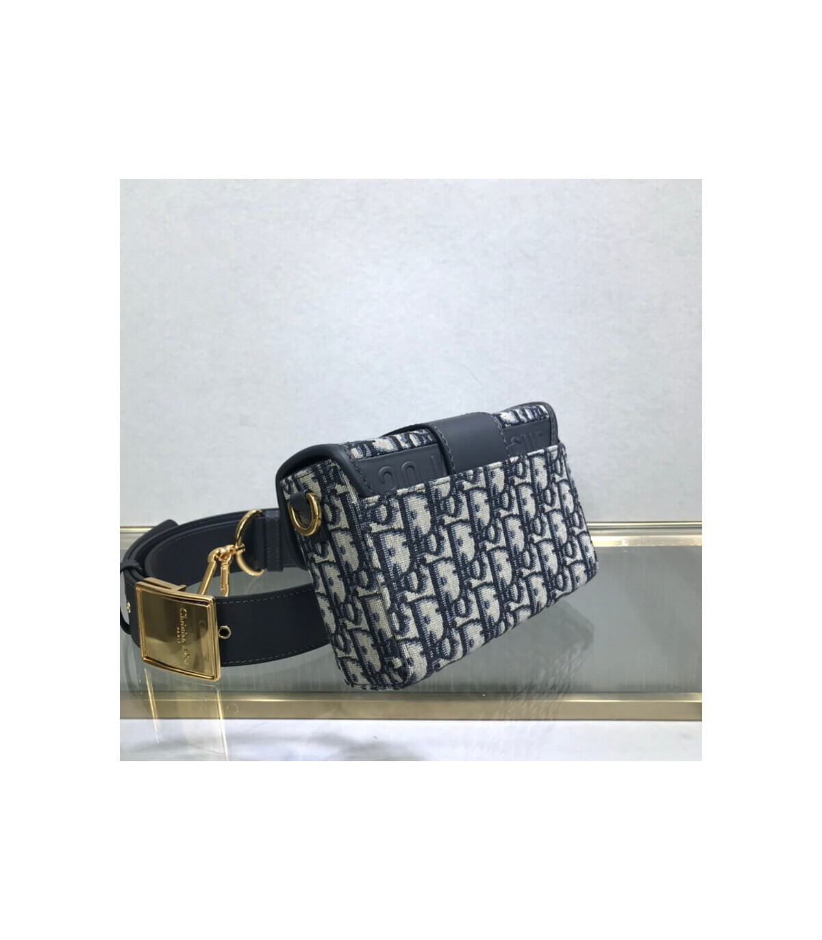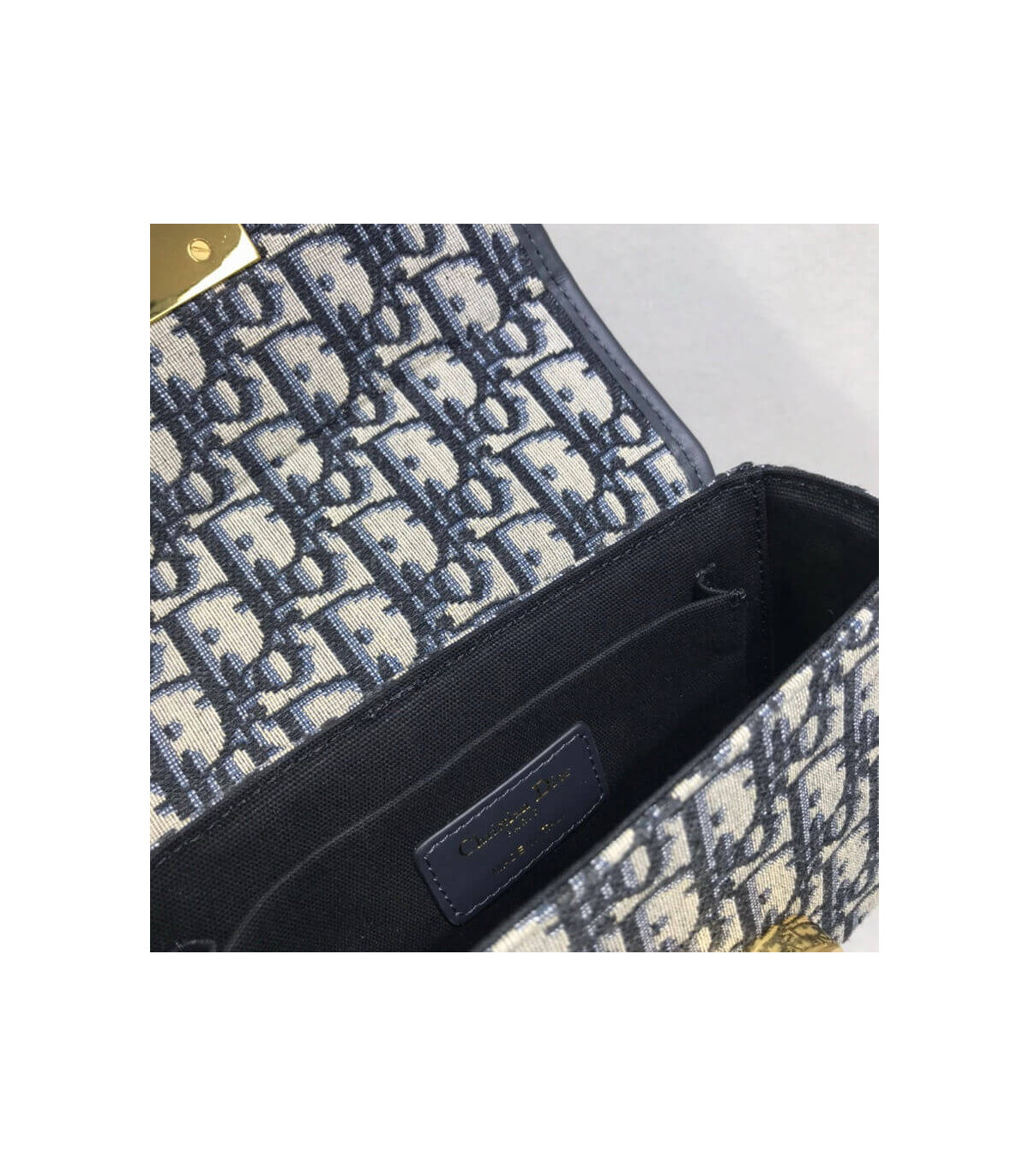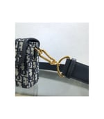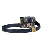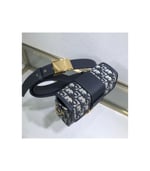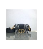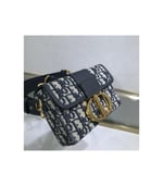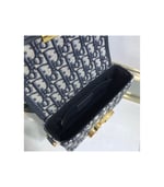 The 30 Montaigne line is inspired by the emblematic address and offers essential pieces that embody the House’s iconic codes. The?compact handbag is crafted in blue Dior Oblique jacquard for an elegant and modern look. The flap is embellished with an antique gold-finish metal ‘CD’ clasp, inspired by the seal of a Christian Dior perfume bottle. Refined details, such as an embossed ’30 MONTAIGNE’ signature on the back and the military-inspired buckle define this unique design. Featuring an adjustable leather shoulder strap, the bag may be carried by hand, worn over the shoulder or crossbody.