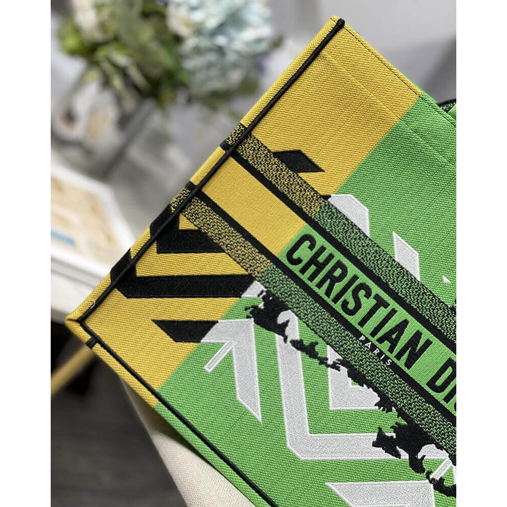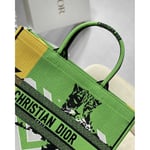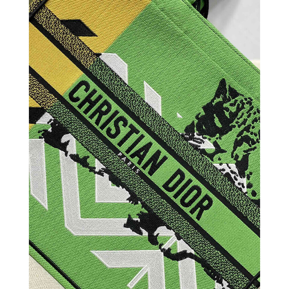 • Christian Dior Large Book Tote Bright Green and Orange D-Jungle Pop Embroidery