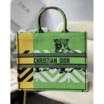 Christian Dior Large Book Tote Bright Green and Orange D-Jungle Pop Embroidery