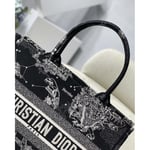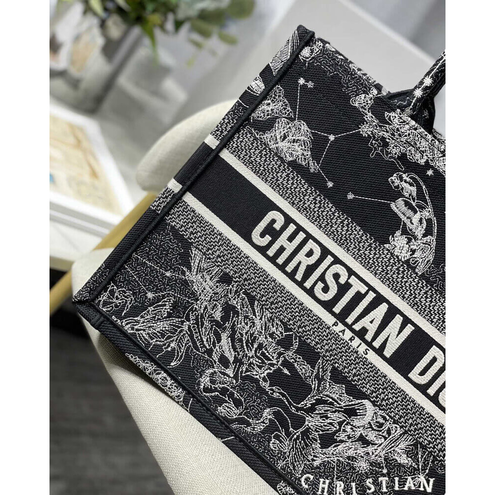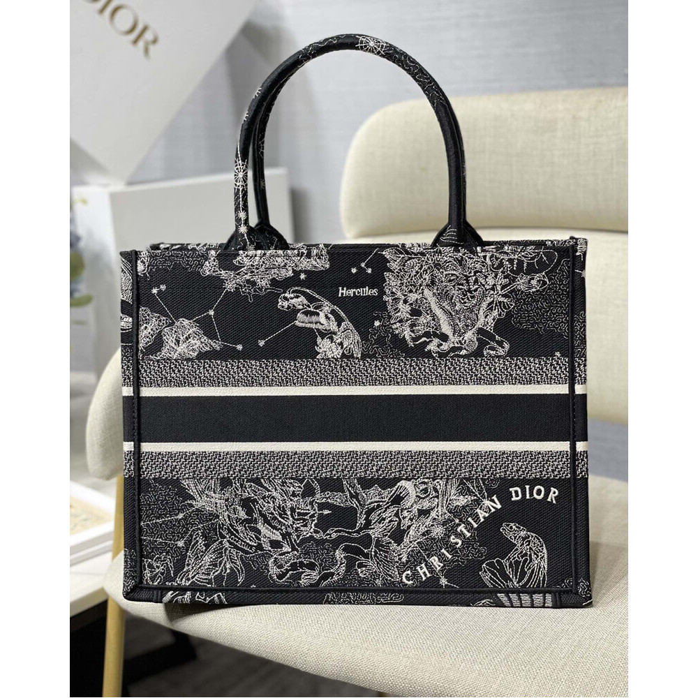 Introduced by Maria Grazia Chiuri, Creative Director of Christian Dior, the Dior Book Tote has become a staple of the Dior aesthetic. Designed to hold all the daily essentials, the blue style is fully embroidered with a Toile de Jouy Zodiac motif, a variation of the House’s hallmark pattern that honors Mr. Dior’s passion for astrology. Adorned with the ‘CHRISTIAN DIOR PARIS’ signature on the front, the large tote exemplifies the House’s signature savoir-faire and may be carried by hand or worn over the shoulder.