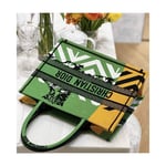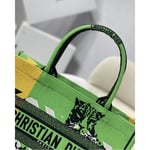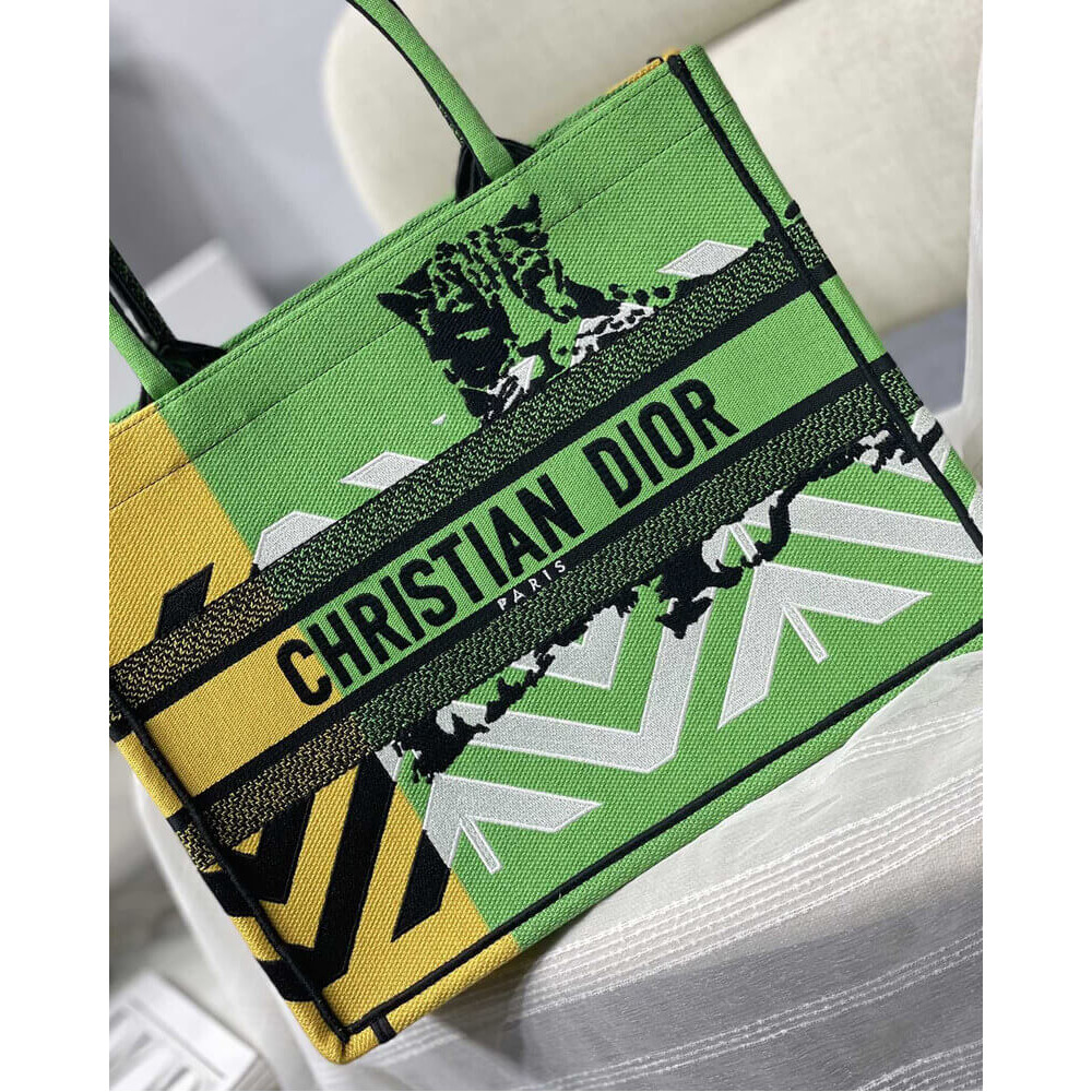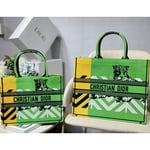 Introduced by Maria Grazia Chiuri, Creative Director of Christian Dior, the Dior Book Tote has become a staple of the Dior aesthetic. Designed to hold the daily essentials, the style is fully embroidered with a bright green and fluorescent orange D-Jungle Pop motif that embodies the collection’s colorful pop inspiration. Adorned with the ‘CHRISTIAN DIOR PARIS’ signature on the front, the medium tote exemplifies the House’s signature savoir-faire and may be carried by hand or worn over the shoulder.