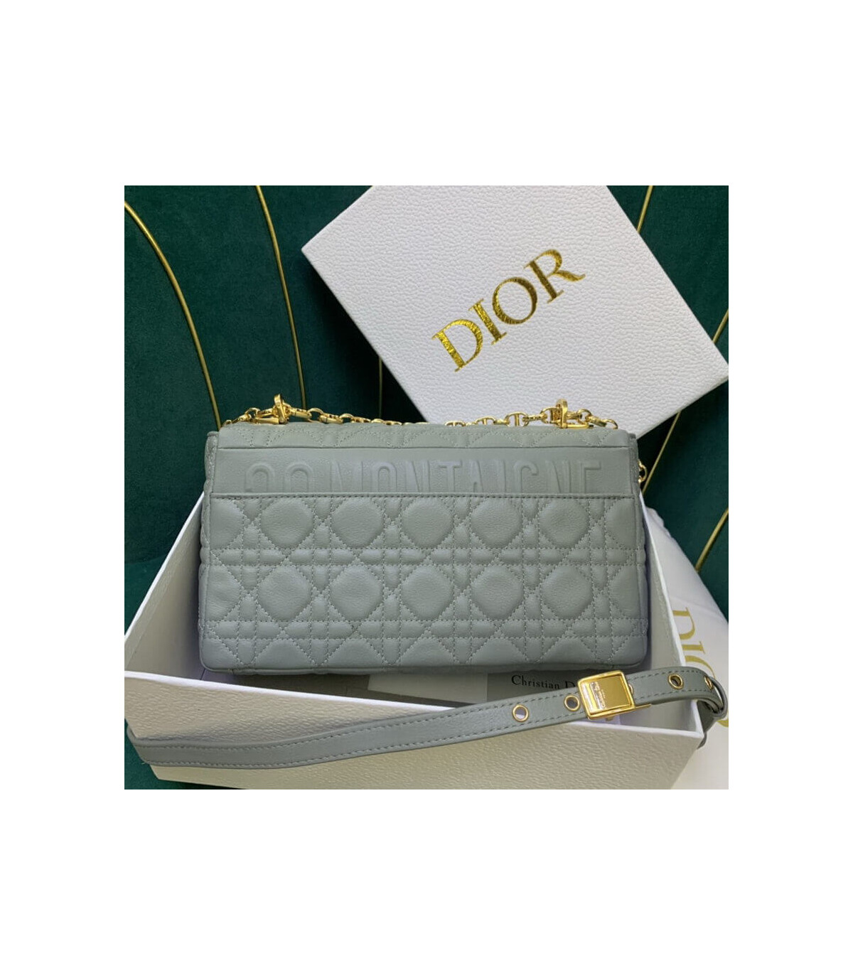 • Christian Dior Medium Caro Bag Gray Supple Cannage Calfskin