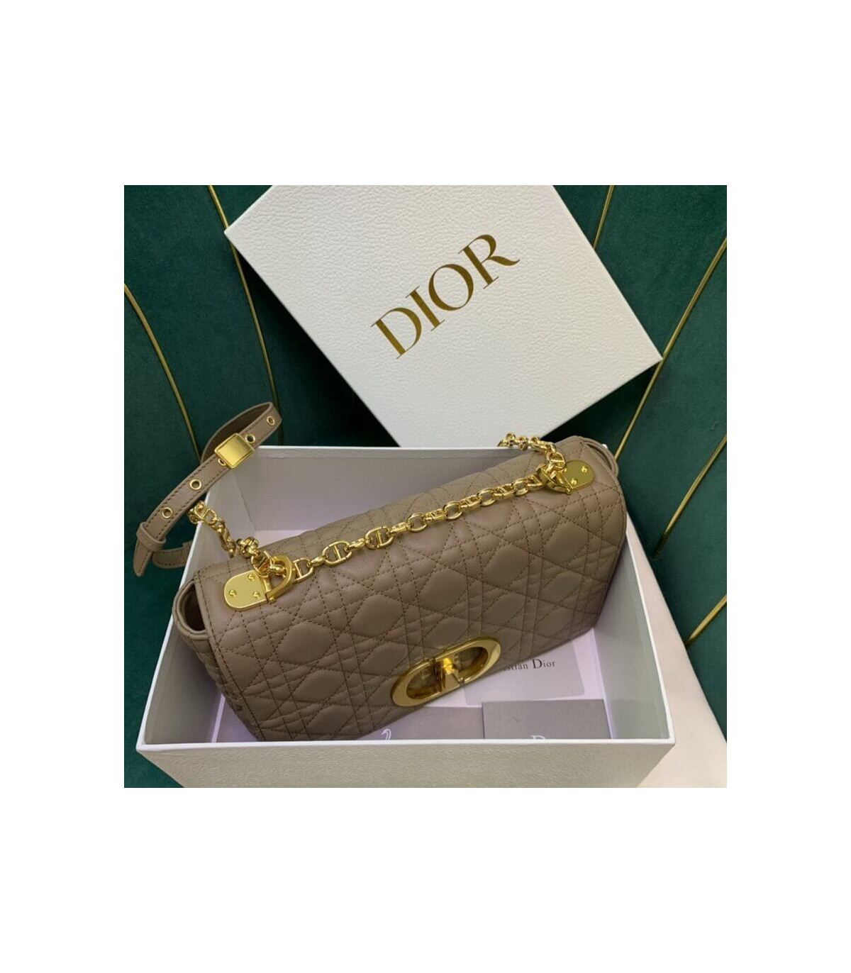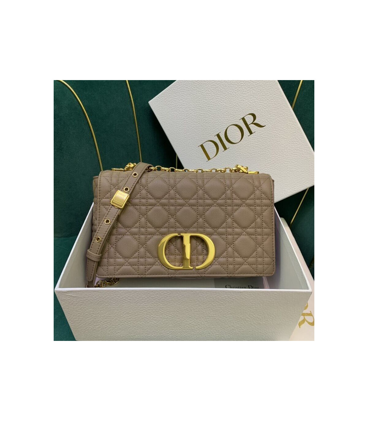 • Christian Dior Medium Caro Bag Warm Taupe Supple Cannage Calfskin