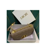 The Dior Caro bag combines modernity with timeless elegance. The design is crafted in warm taupe calfskin with Cannage stitching. The supple bag features a flap adorned with an antique gold-finish metal ‘CD’ twist clasp, inspired by the seal of a Christian Dior perfume bottle. The detachable chain shoulder strap with ‘CD’ signature links allows it to be carried by hand, over the shoulder or crossbody, or may be replaced by one of the House’s wide embroidered straps, allowing the medium bag to pair with day or evening attire.