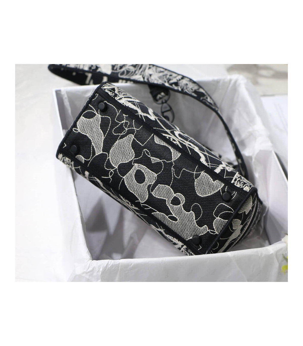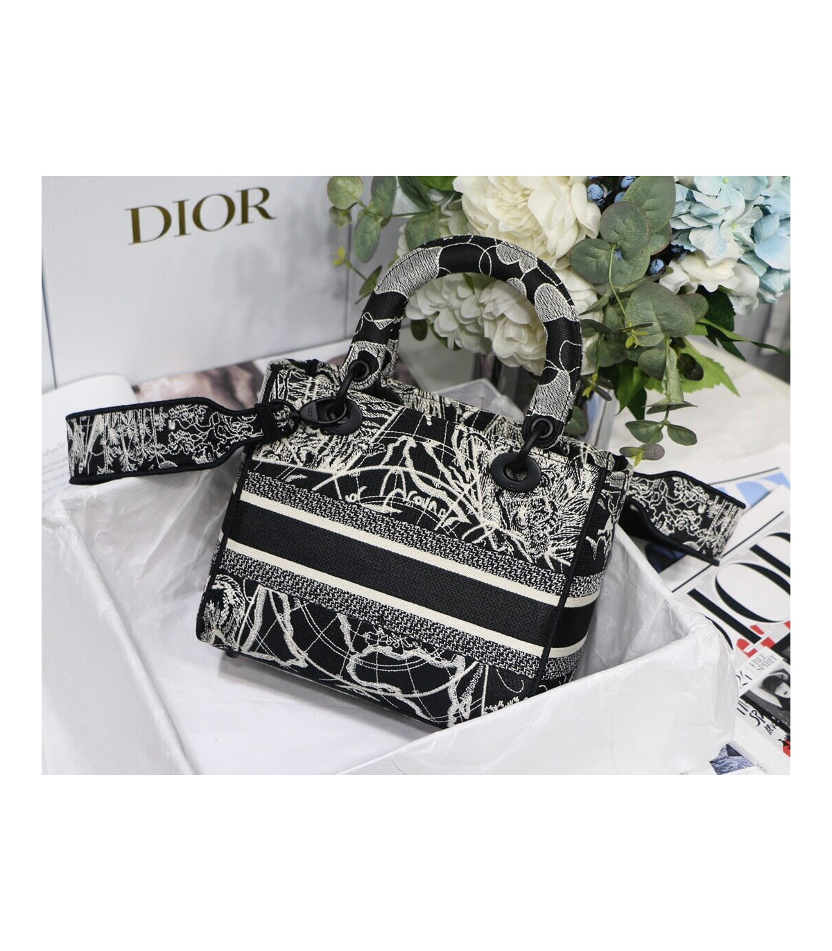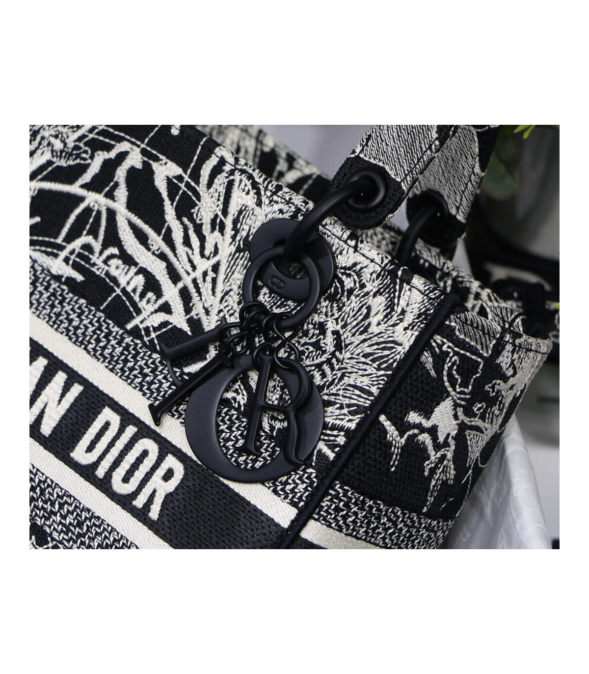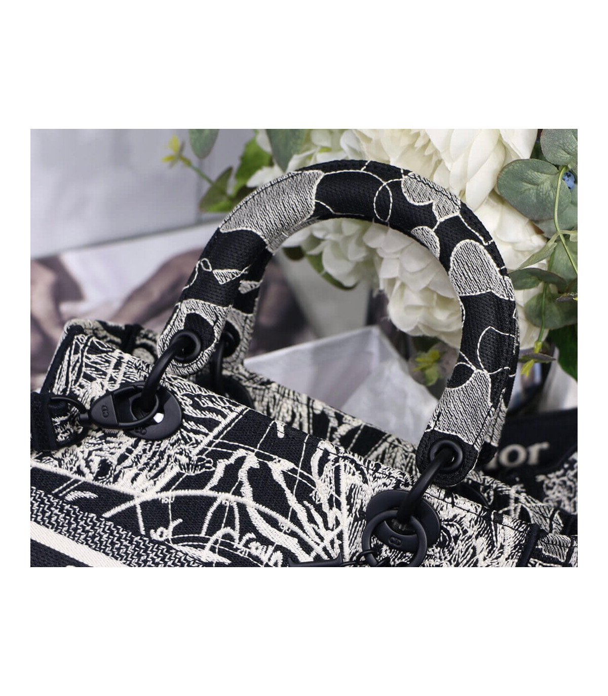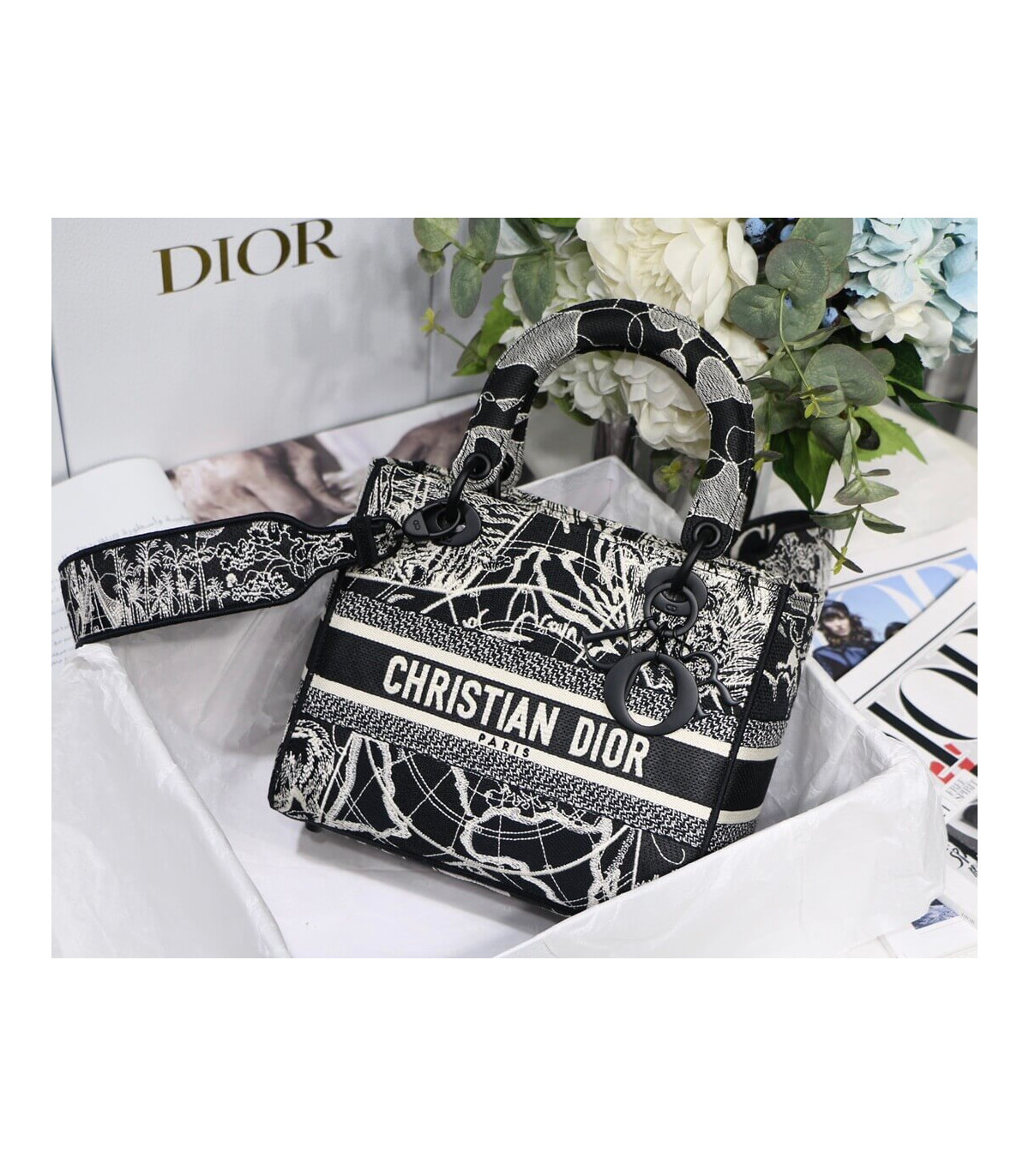 • Christian Dior Medium Lady D-Lite Bag Black and White Around the World Embroidery