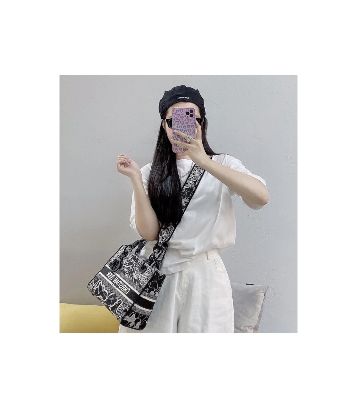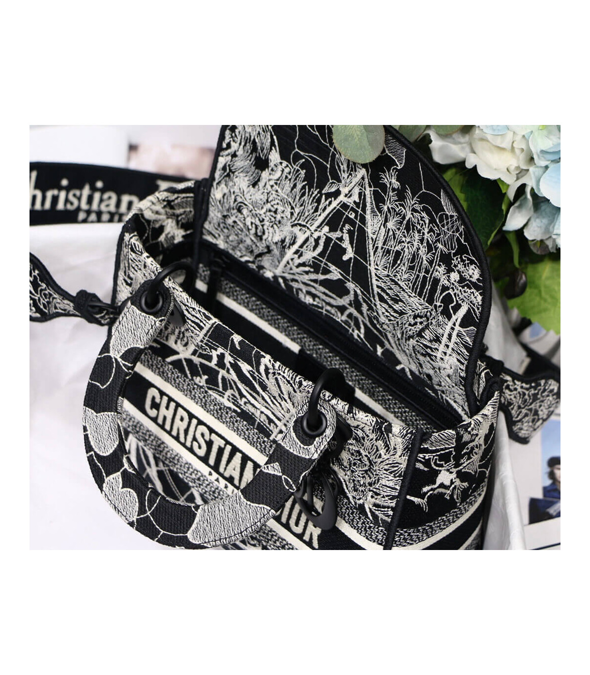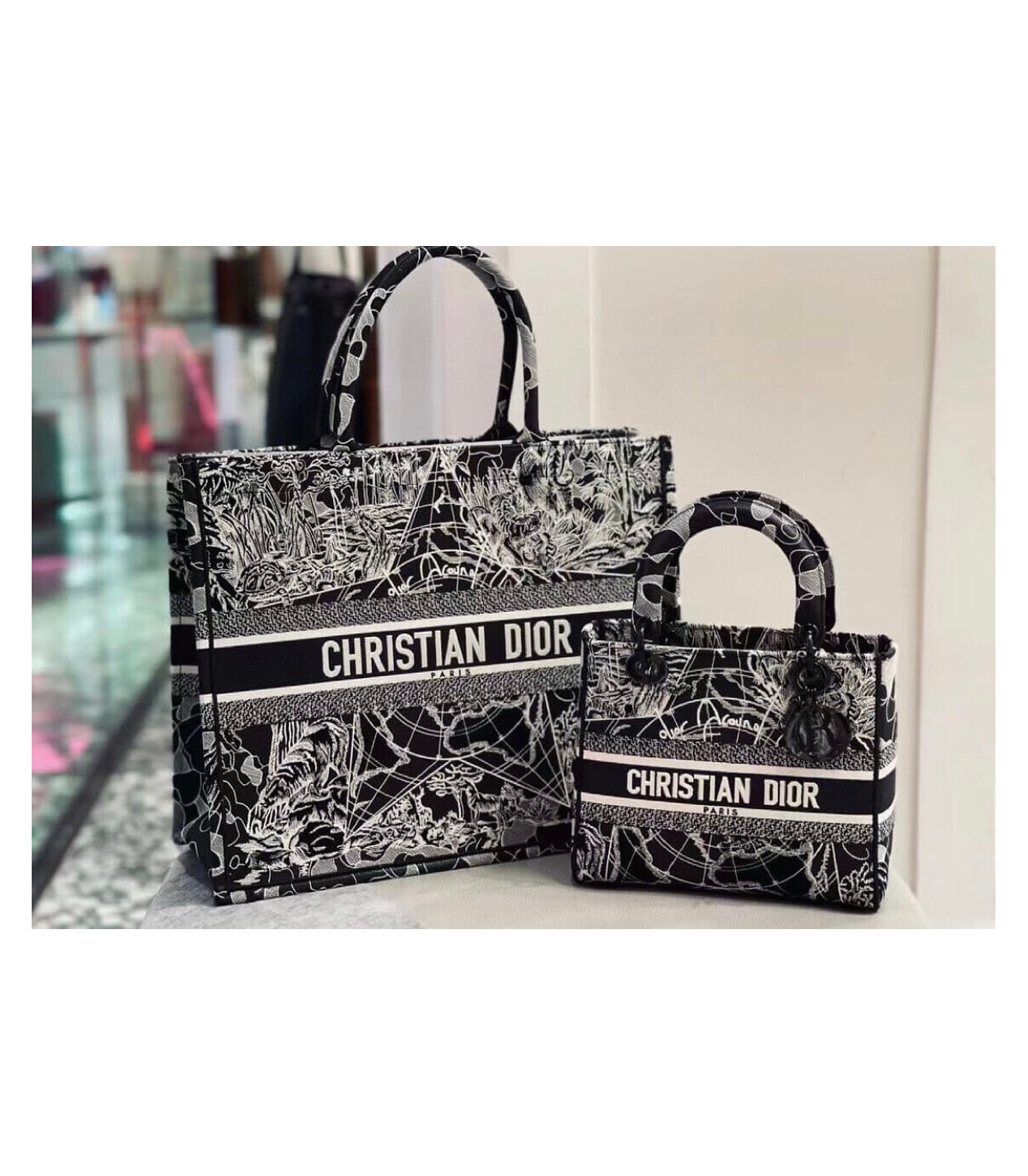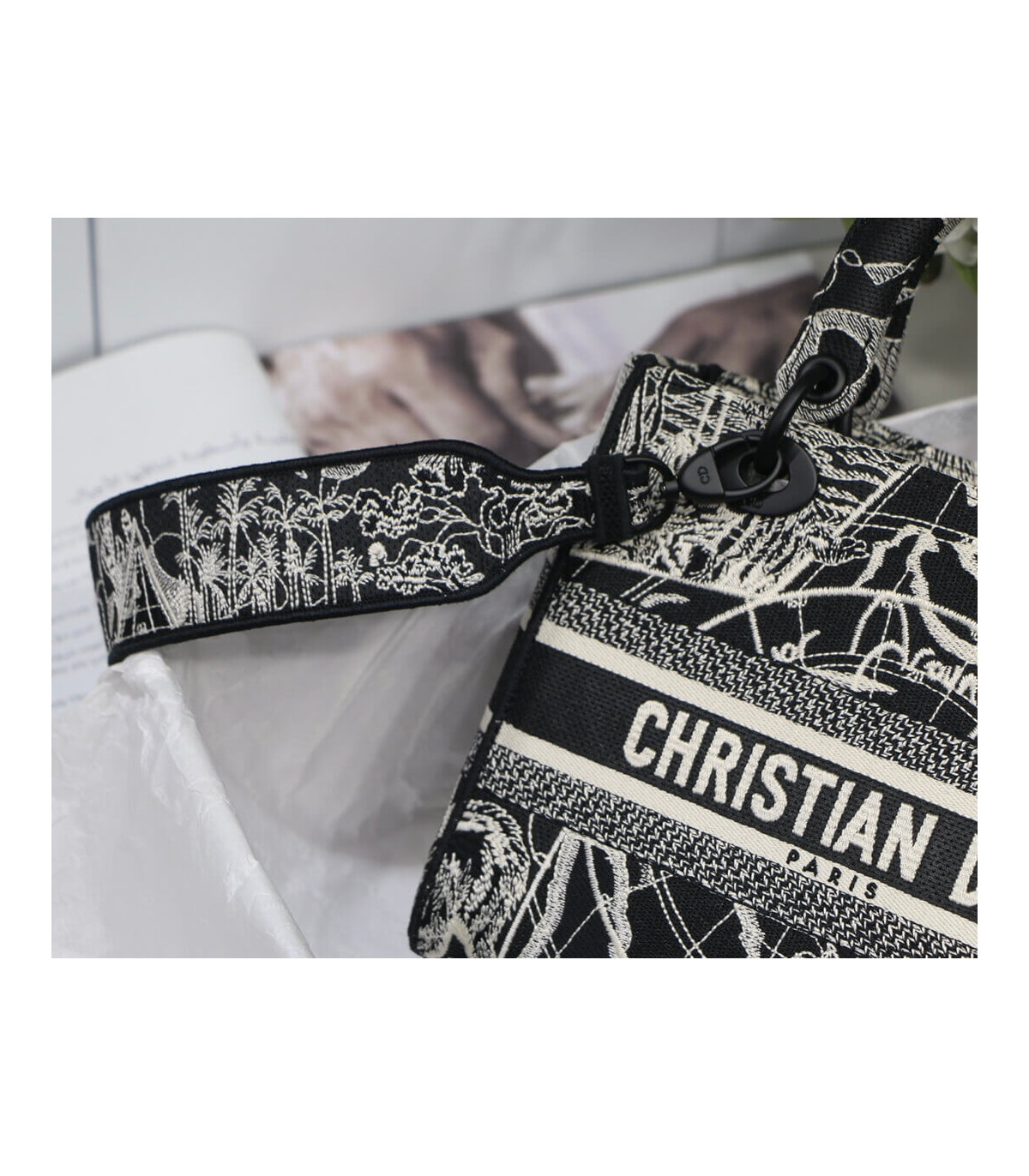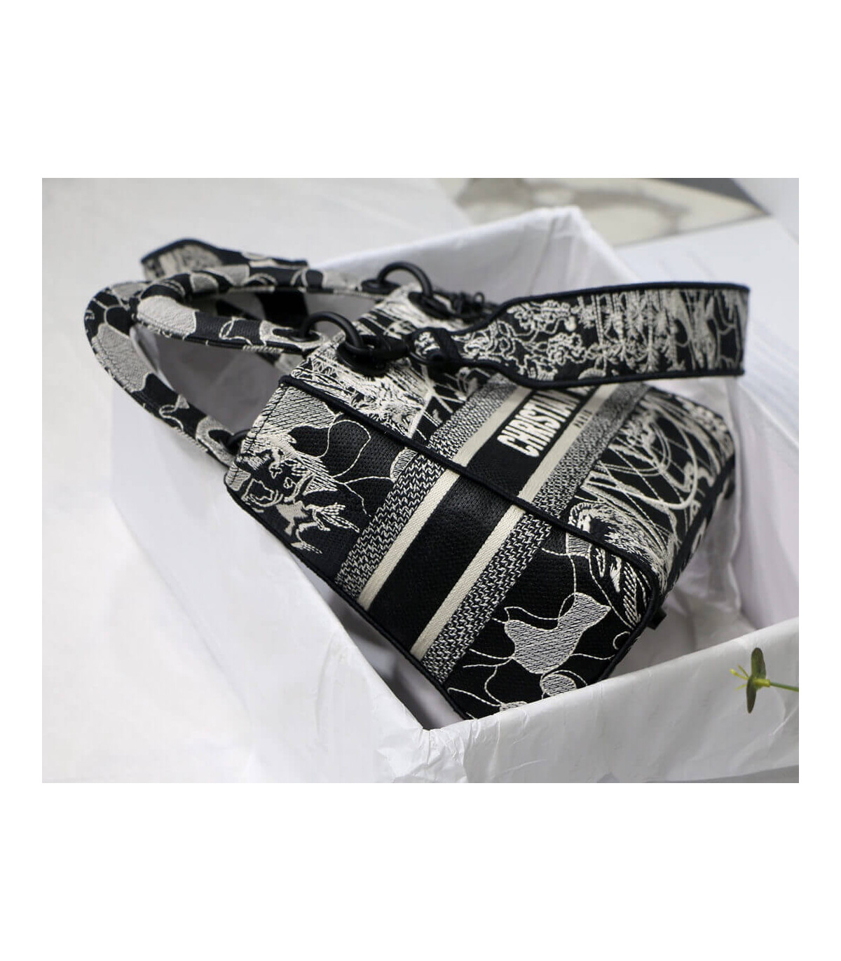 • Christian Dior Medium Lady D-Lite Bag Black and White Around the World Embroidery