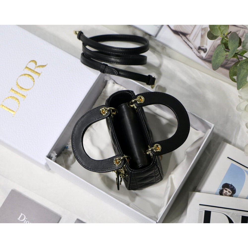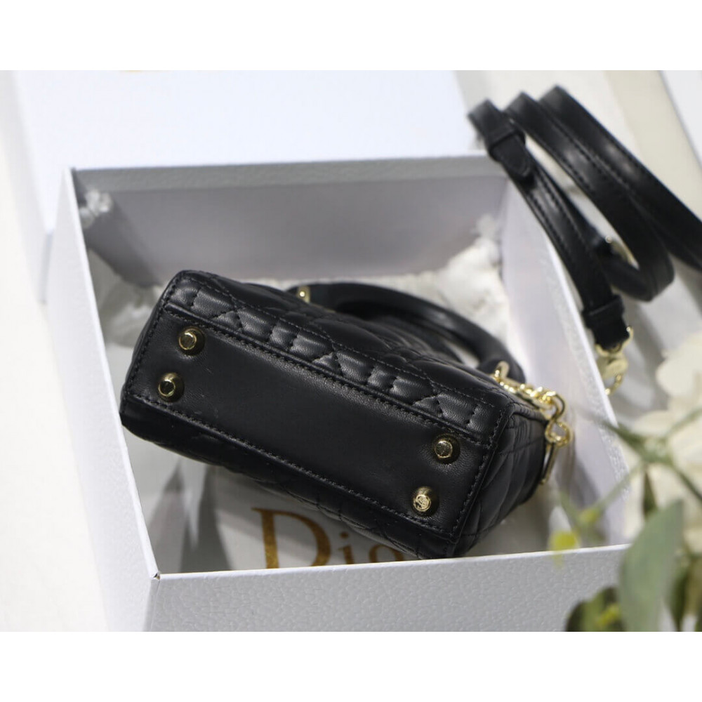 • Christian Dior Micro Lady Dior Bag Black Cannage Lambskin
