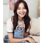 The Lady Dior bag embodies the House’s vision of elegance and beauty. Crafted in Rose des Vents lambskin with signature Cannage topstitching, its iconic silhouette is embellished with a ‘D.I.O.R.’ charm. The miniature style can accommodate all the small daily essentials and, thanks to its handles and adjustable and removable shoulder strap, it can be carried by hand, worn over the shoulder or crossbody.