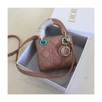 The Lady Dior bag embodies the House’s vision of elegance and beauty. Crafted in Rose des Vents lambskin with signature Cannage topstitching, its iconic silhouette is embellished with a ‘D.I.O.R.’ charm. The miniature style can accommodate all the small daily essentials and, thanks to its handles and adjustable and removable shoulder strap, it can be carried by hand, worn over the shoulder or crossbody.