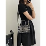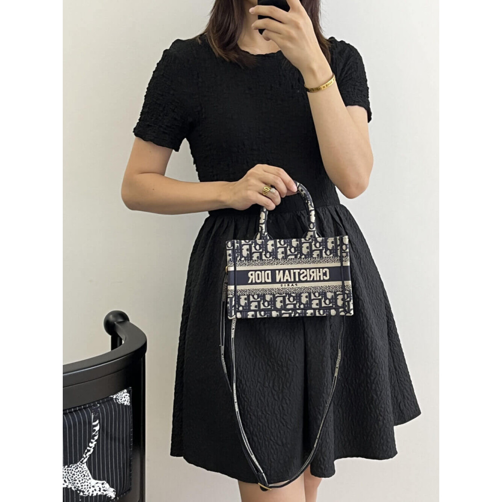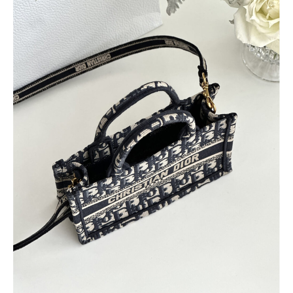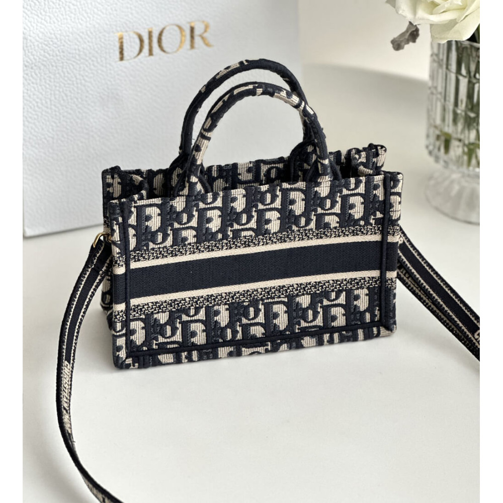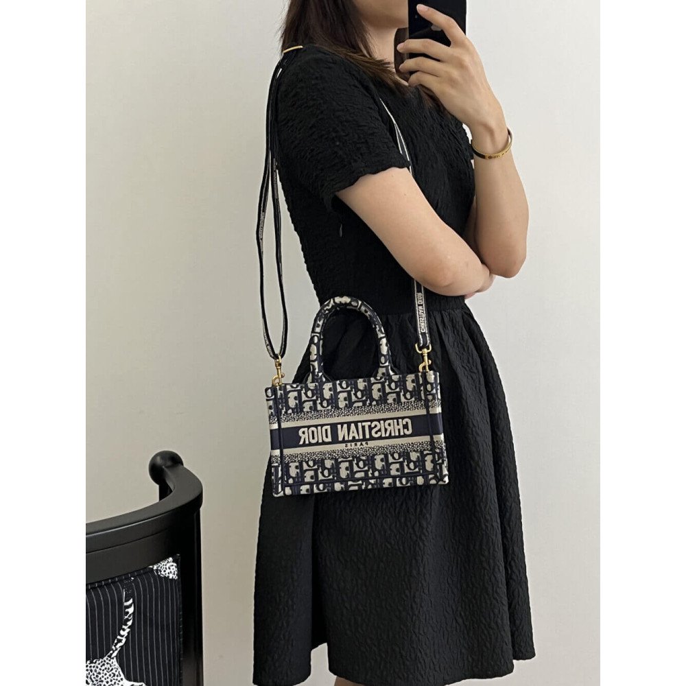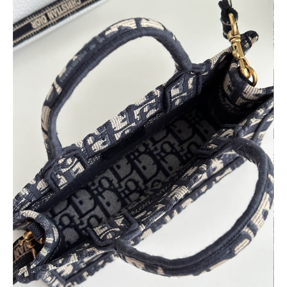 New for the Cruise 2024 collection designed by Maria Grazia Chiuri, the miniature tote elevates the iconic Dior Book Tote line. Fully embroidered with the House’s hallmark blue and beige Dior Oblique motif, it showcases the Christian Dior Paris signature. Embodying Dior’s savoir-faire, the Dior Book Tote is equipped with an adjustable and removable strap that allows it to be carried by hand, worn over the shoulder or crossbody.