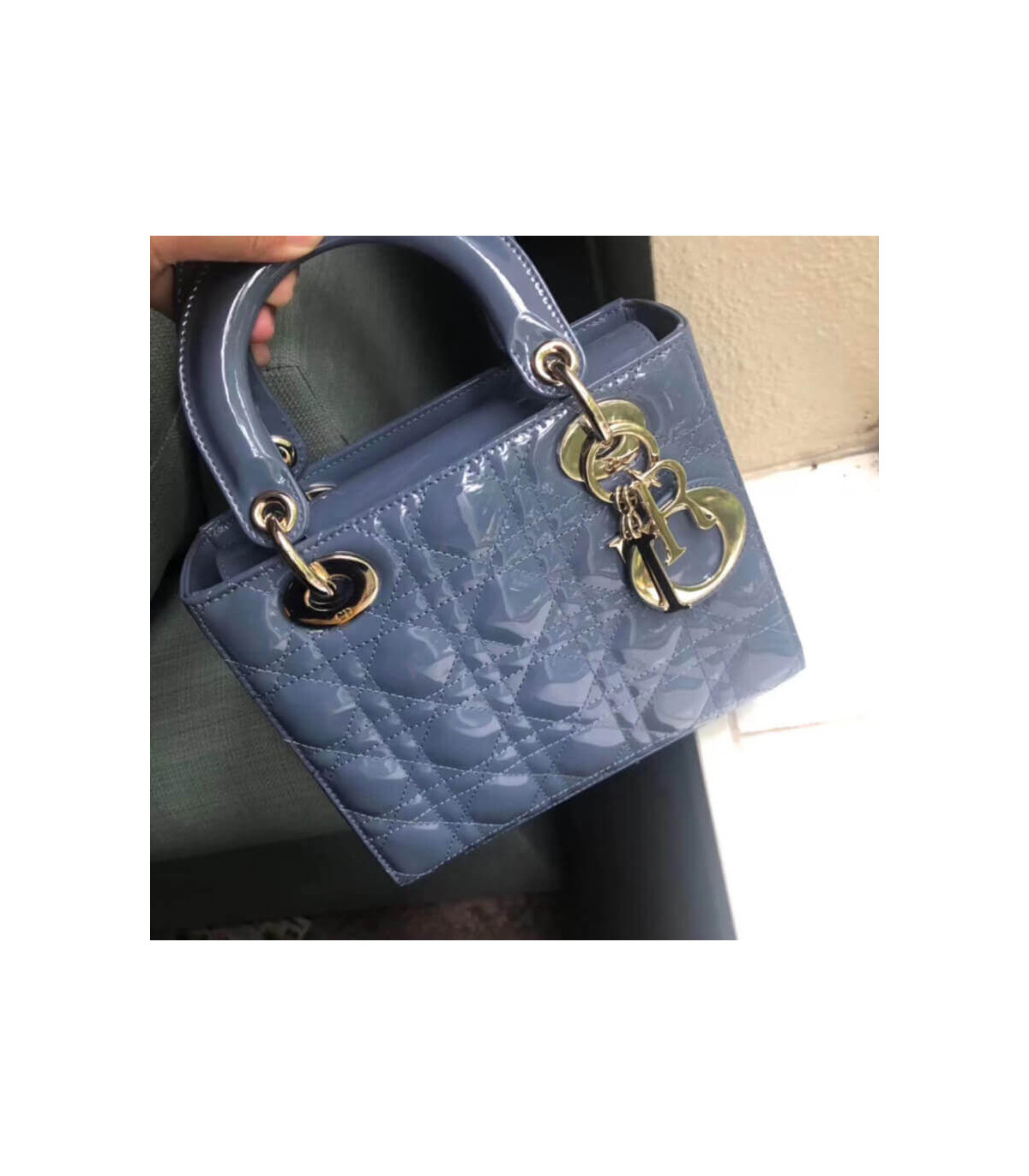 The Lady Dior handbag epitomizes the House’s vision of elegance and beauty. Sleek and refined the timeless yet relevant style is crafted in black patent calfskin with Cannage stitching, creating the instantly recognizable quilted texture. The pale gold-finish metal signature ‘D.I.O.R.’ charms embellish and illuminate its silhouette. Featuring a removable chain shoulder strap, the miniature Lady Dior bag can be carried by hand, worn over the shoulder or crossbody as an ideal evening companion.