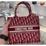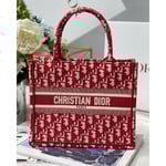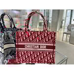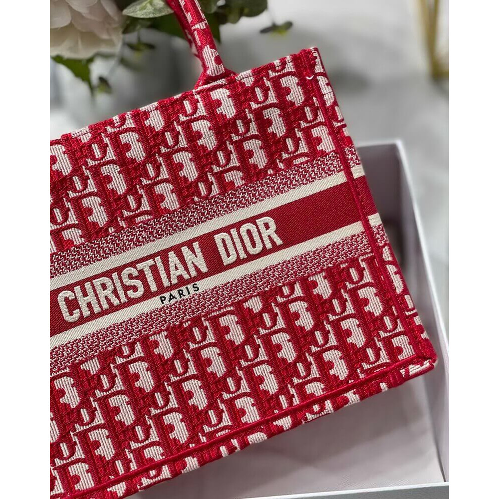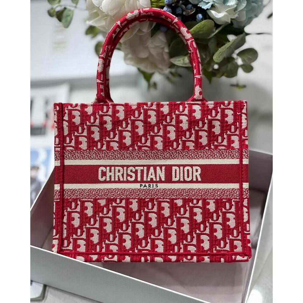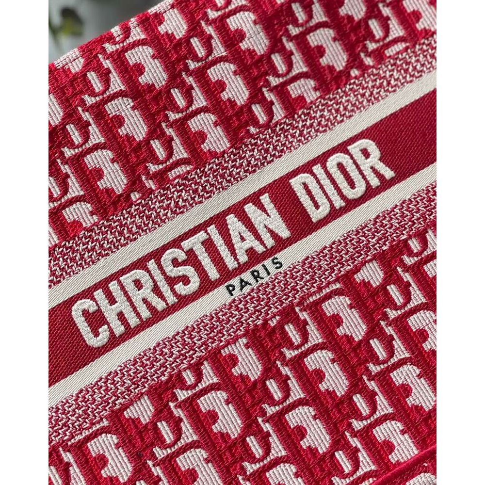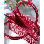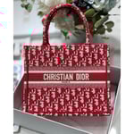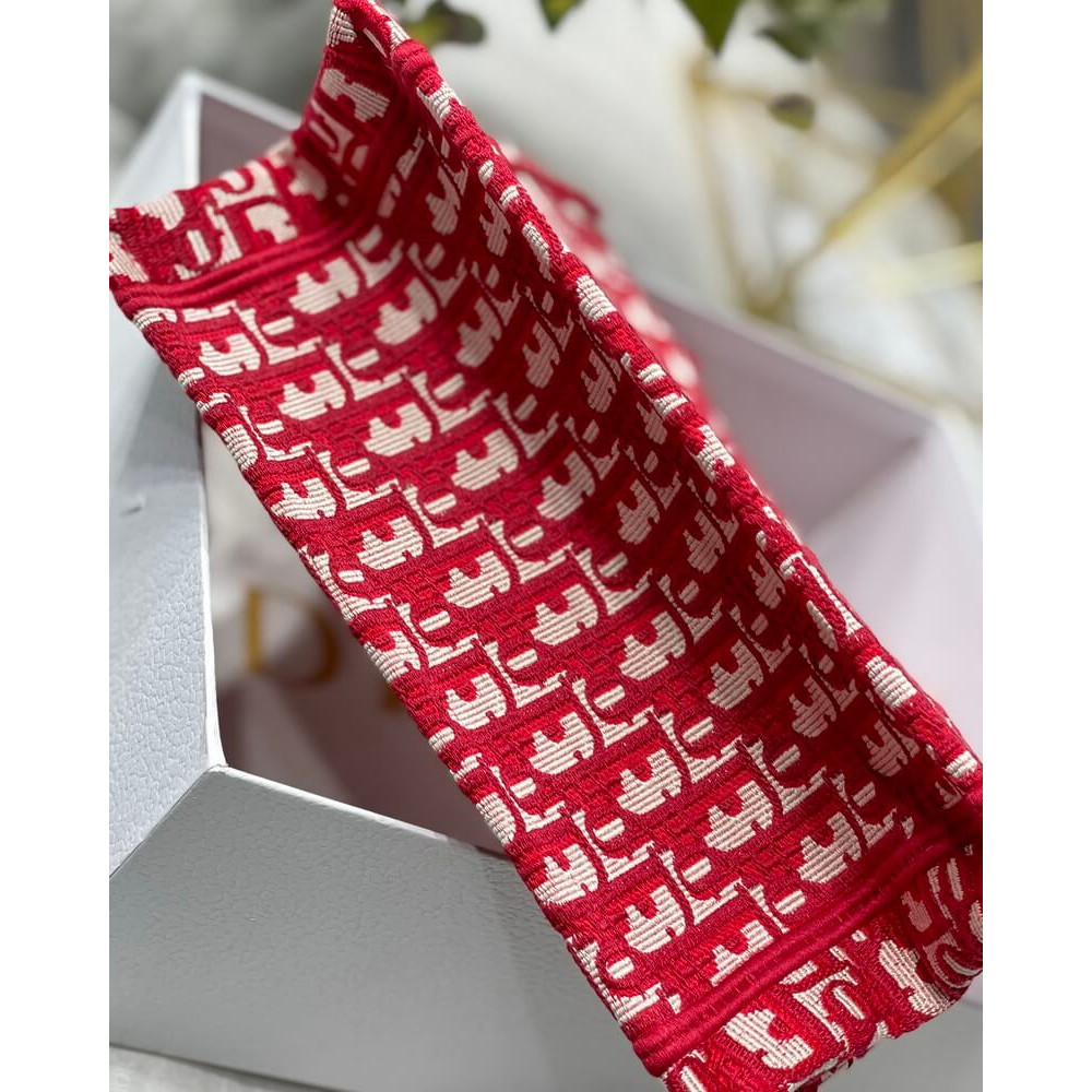 • Christian Dior Small Book Tote Bag 26cm Oblique Embroidery Red