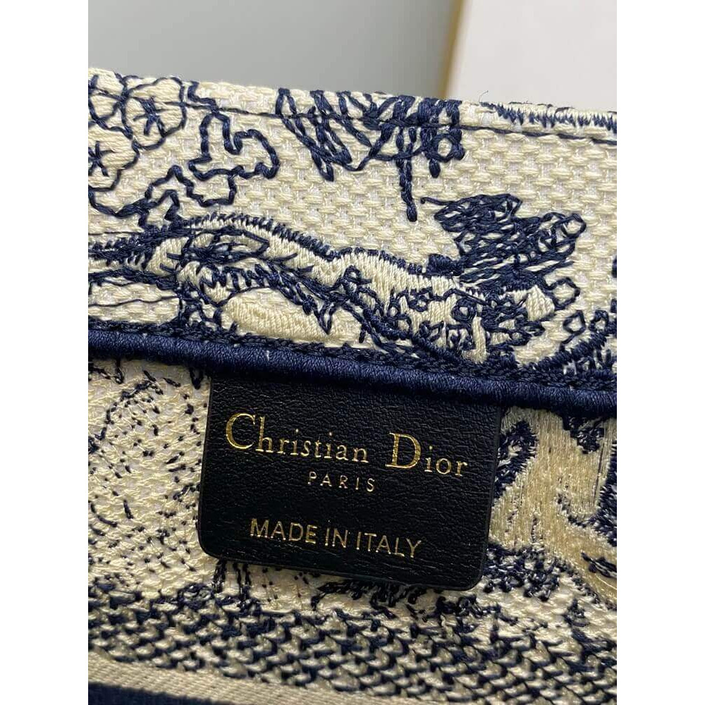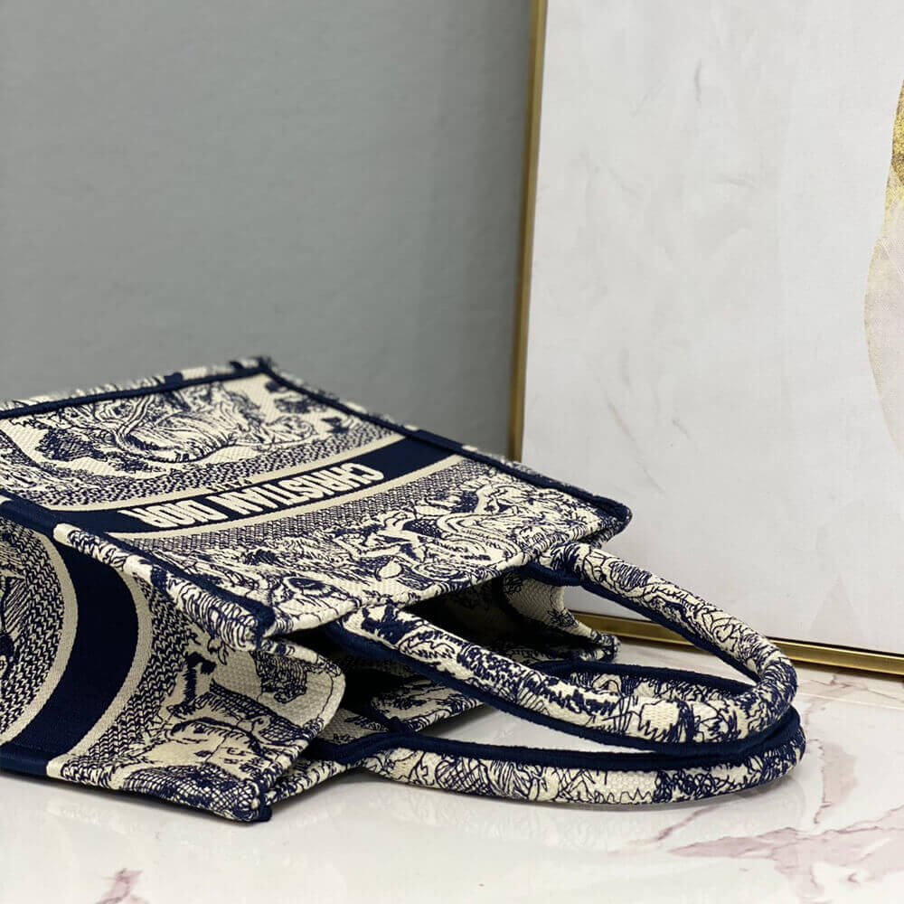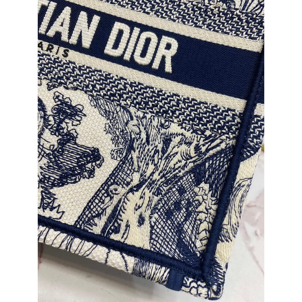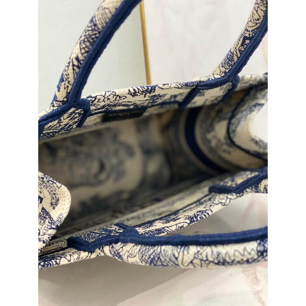Christian Dior Small Book Tote Bag 26cm Toile De Jouy Reverse Embroidery Blue