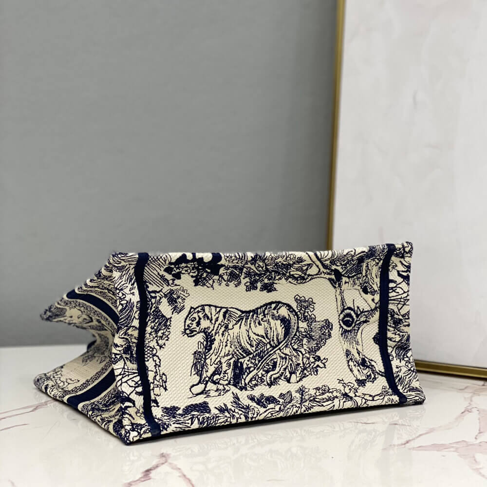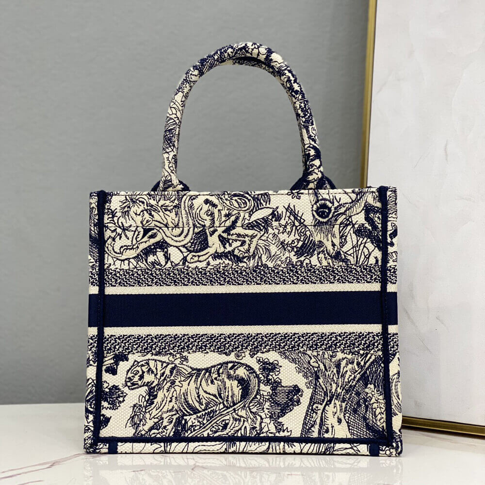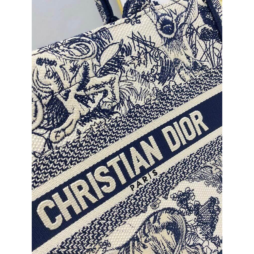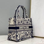 Christian Dior Small Book Tote Bag 26cm Toile De Jouy Reverse Embroidery Blue