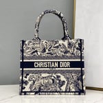 • Christian Dior Small Book Tote Bag 26cm Toile De Jouy Reverse Embroidery Blue