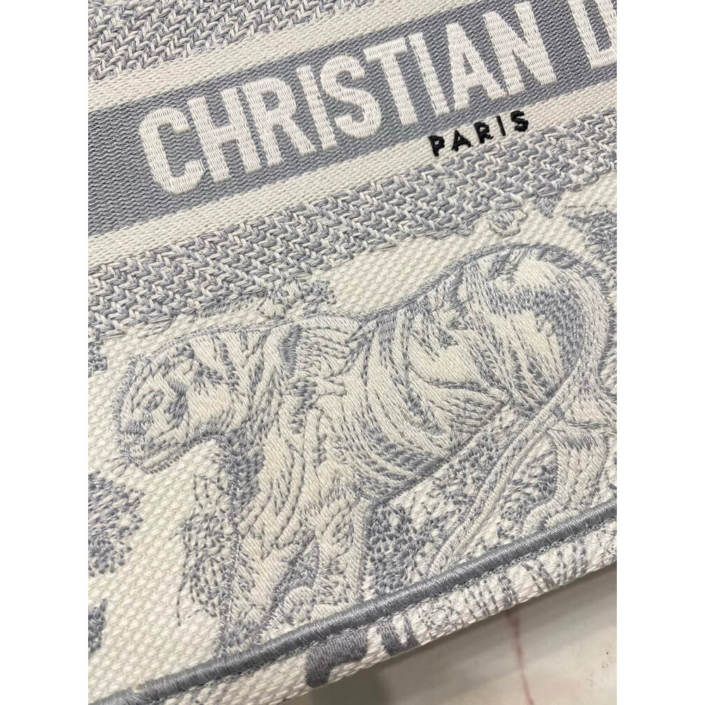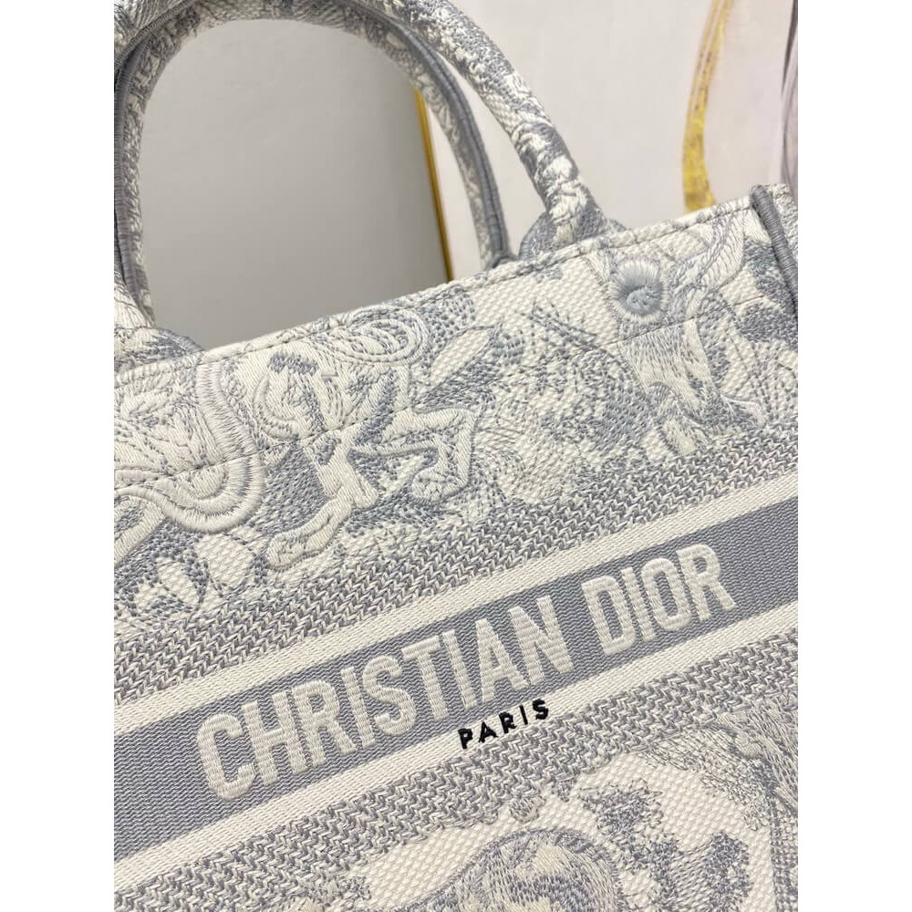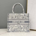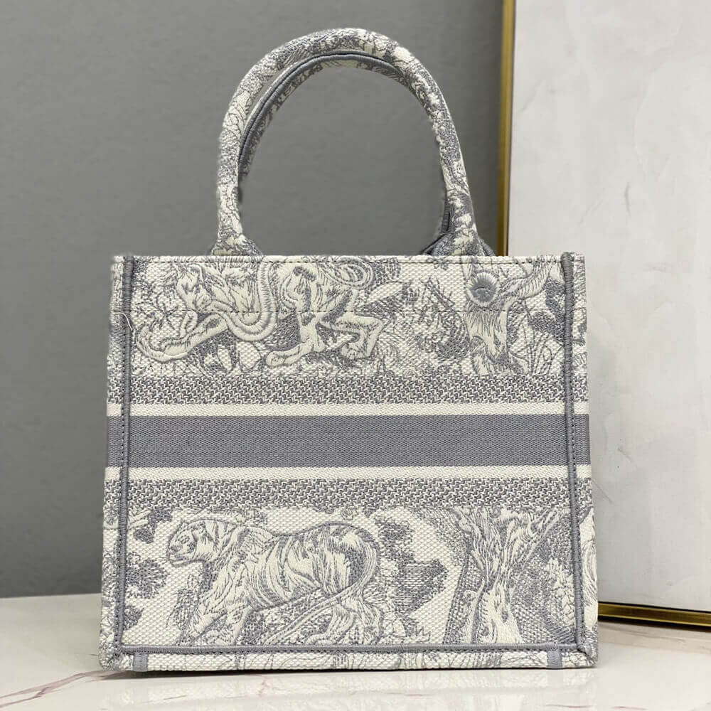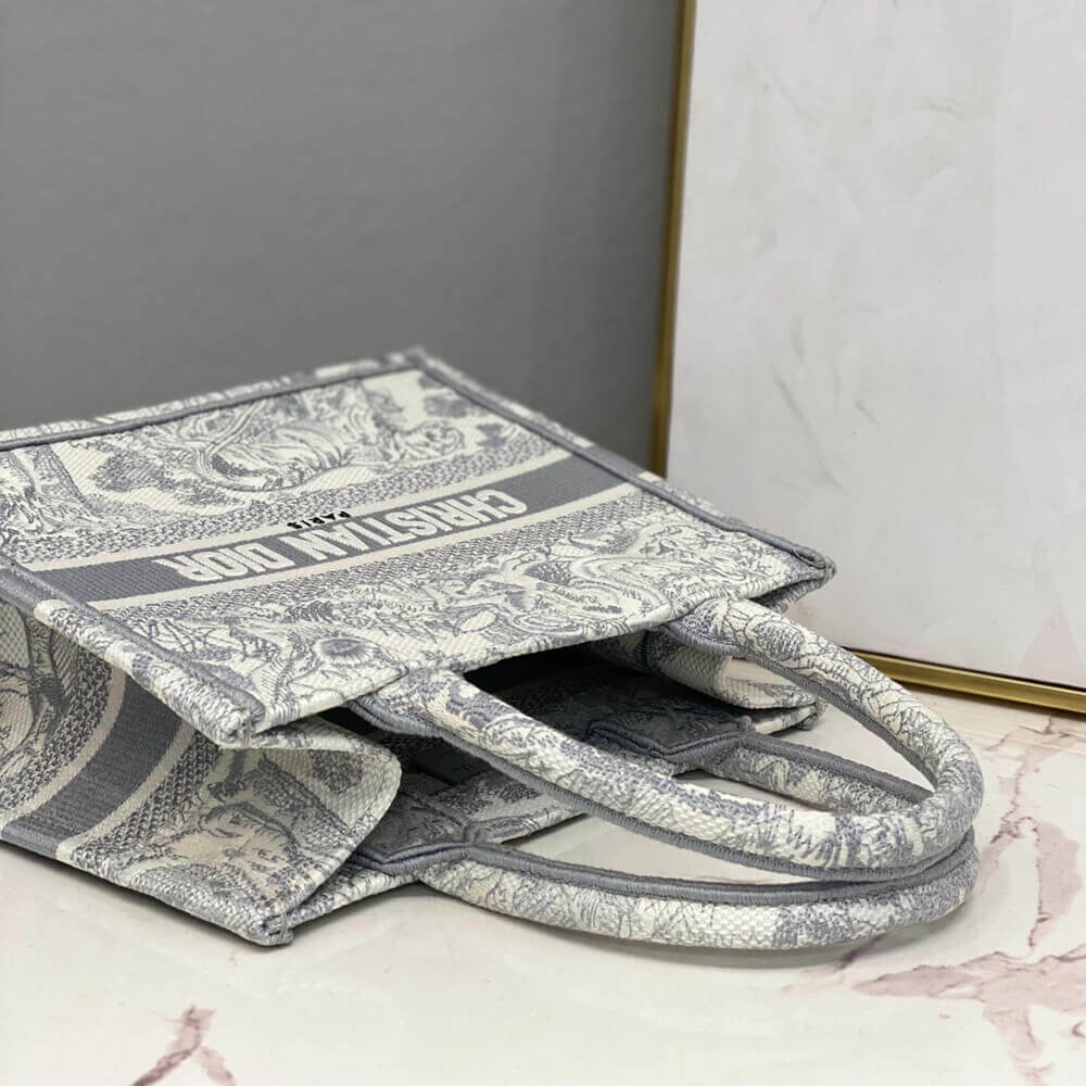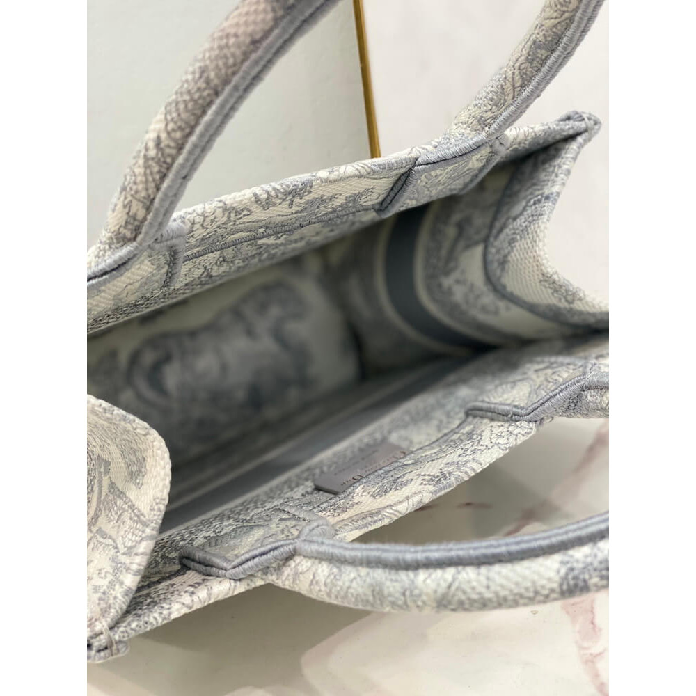 Christian Dior Small Book Tote Bag 26cm Toile De Jouy Reverse Embroidery Grey