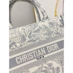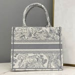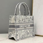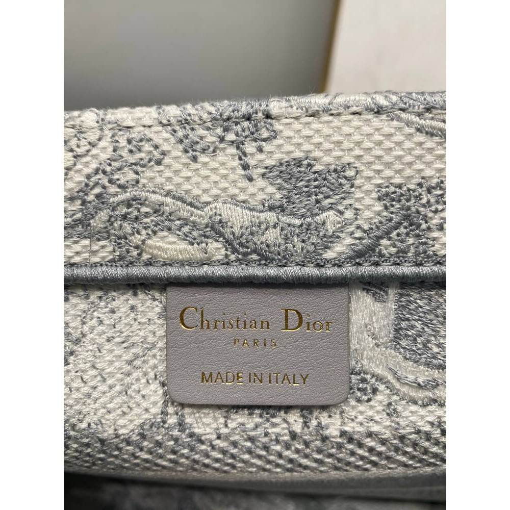 • Christian Dior Small Book Tote Bag 26cm Toile De Jouy Reverse Embroidery Grey