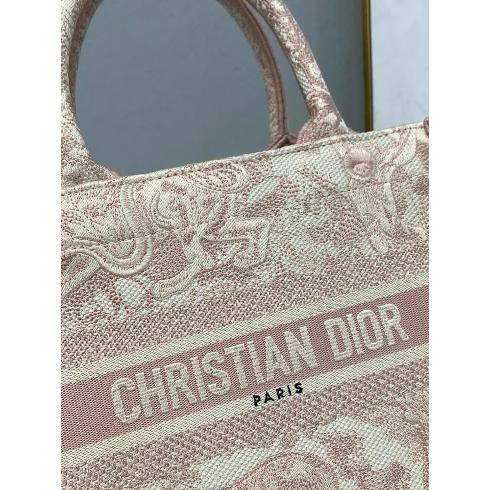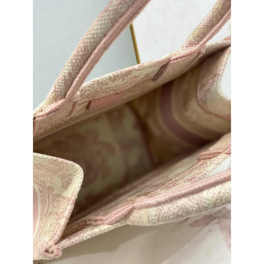 Christian Dior Small Book Tote Bag 26cm Toile De Jouy Reverse Embroidery Pink