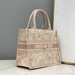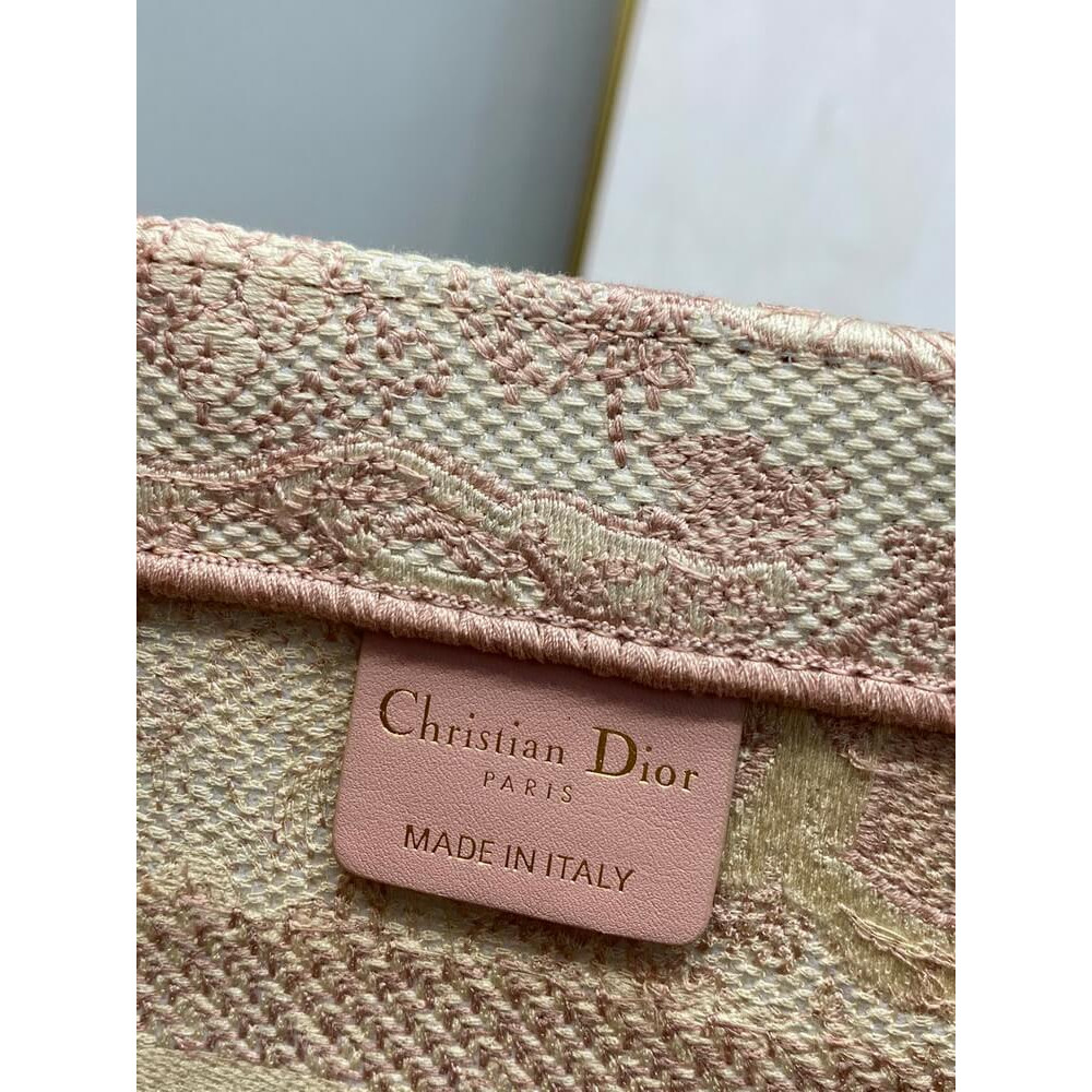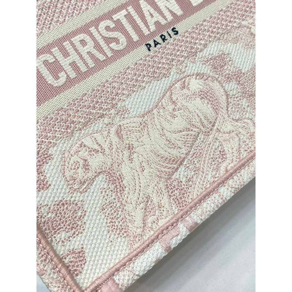 • Christian Dior Small Book Tote Bag 26cm Toile De Jouy Reverse Embroidery Pink