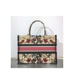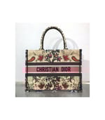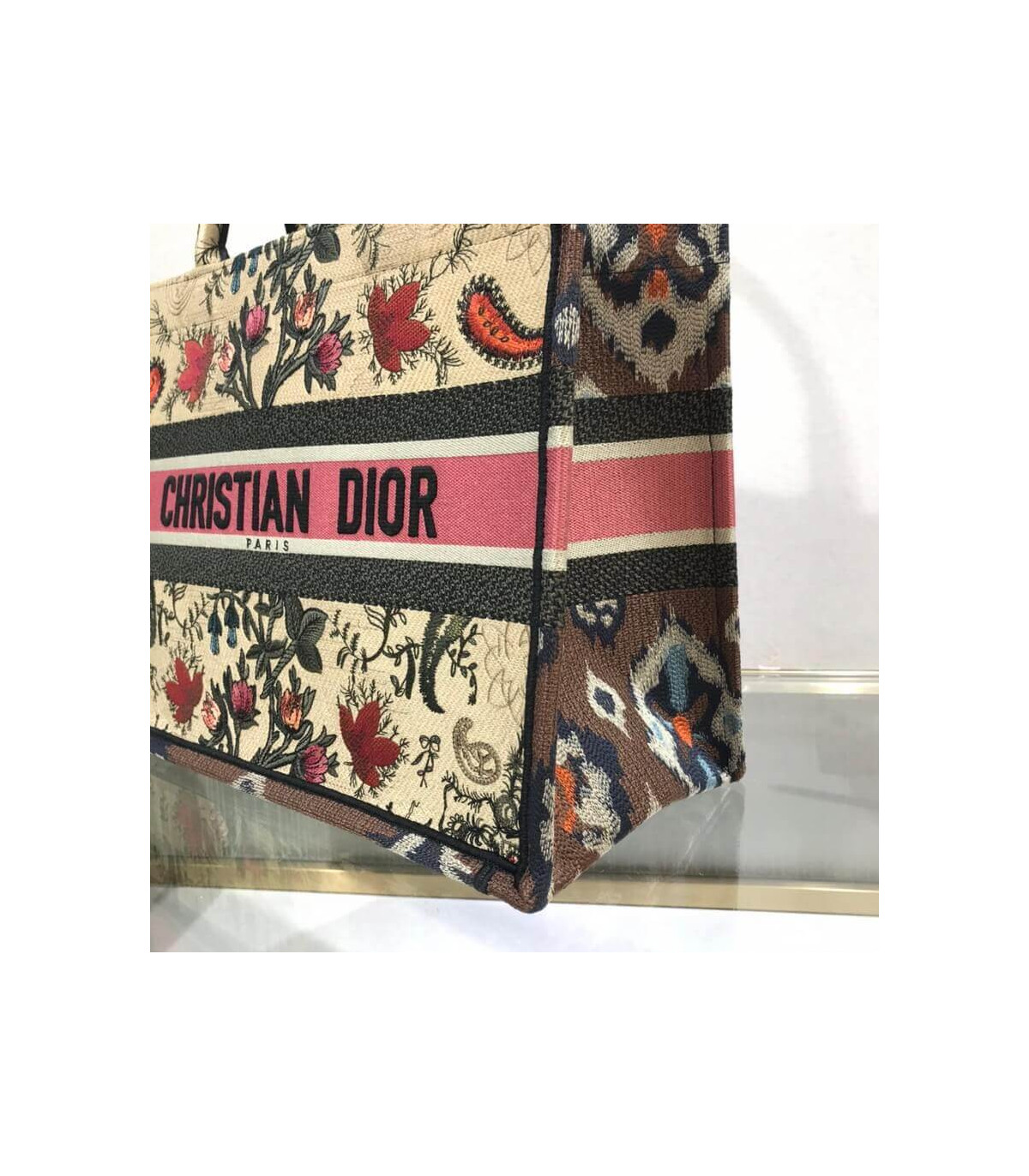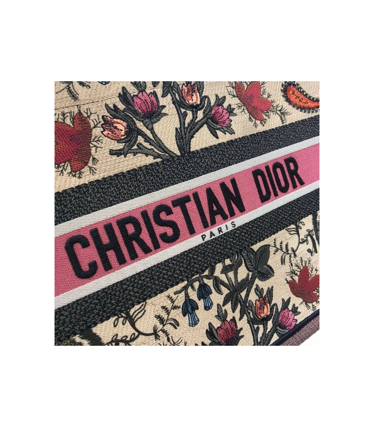The Dior Book Tote, an original style introduced by Creative Director Maria Grazia Chiuri, has become a staple of the Dior aesthetic. Designed to carry all the daily essentials, the silhouette is fully embroidered with the multicolor Dior Flowers motif. The carryall boasts a ‘Christian Dior’ signature on the front while the sides are adorned with a graphic motif for a contrasting modern touch. The bag is a prime example of Dior savoir-faire.