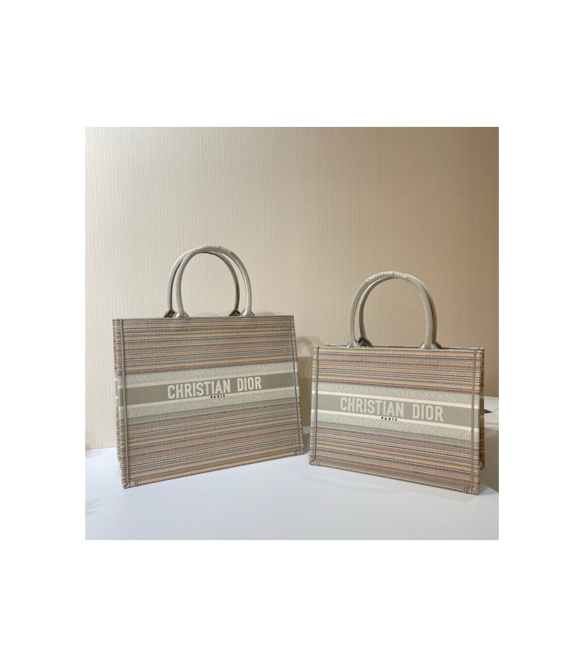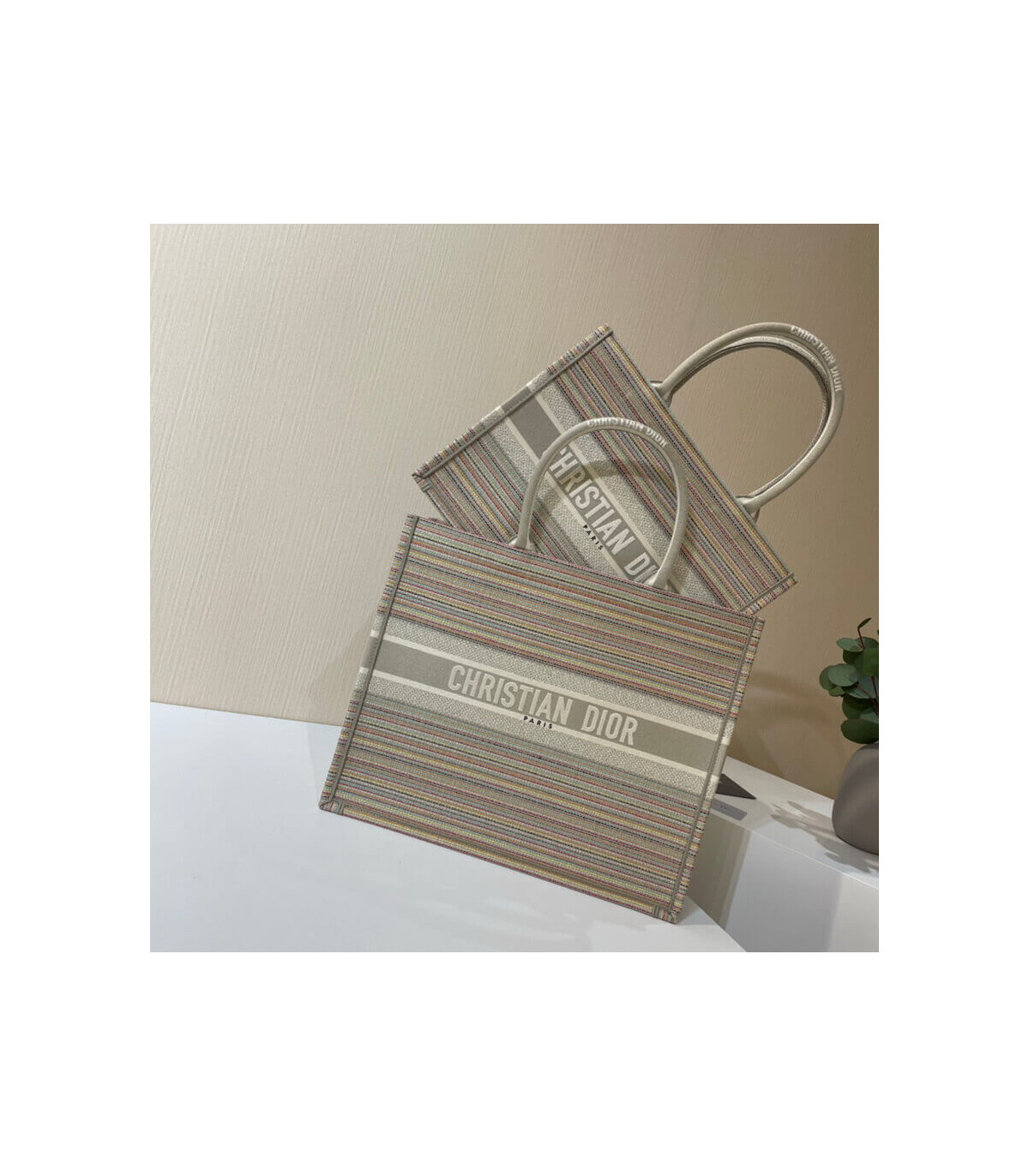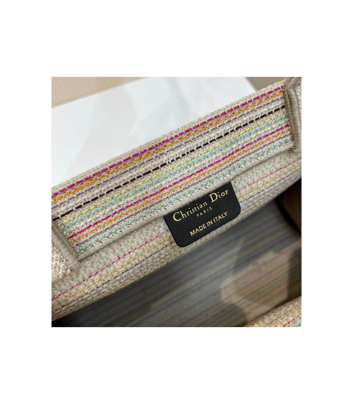 Christian Dior Small Book Tote Multicolor Stripes Embroidery