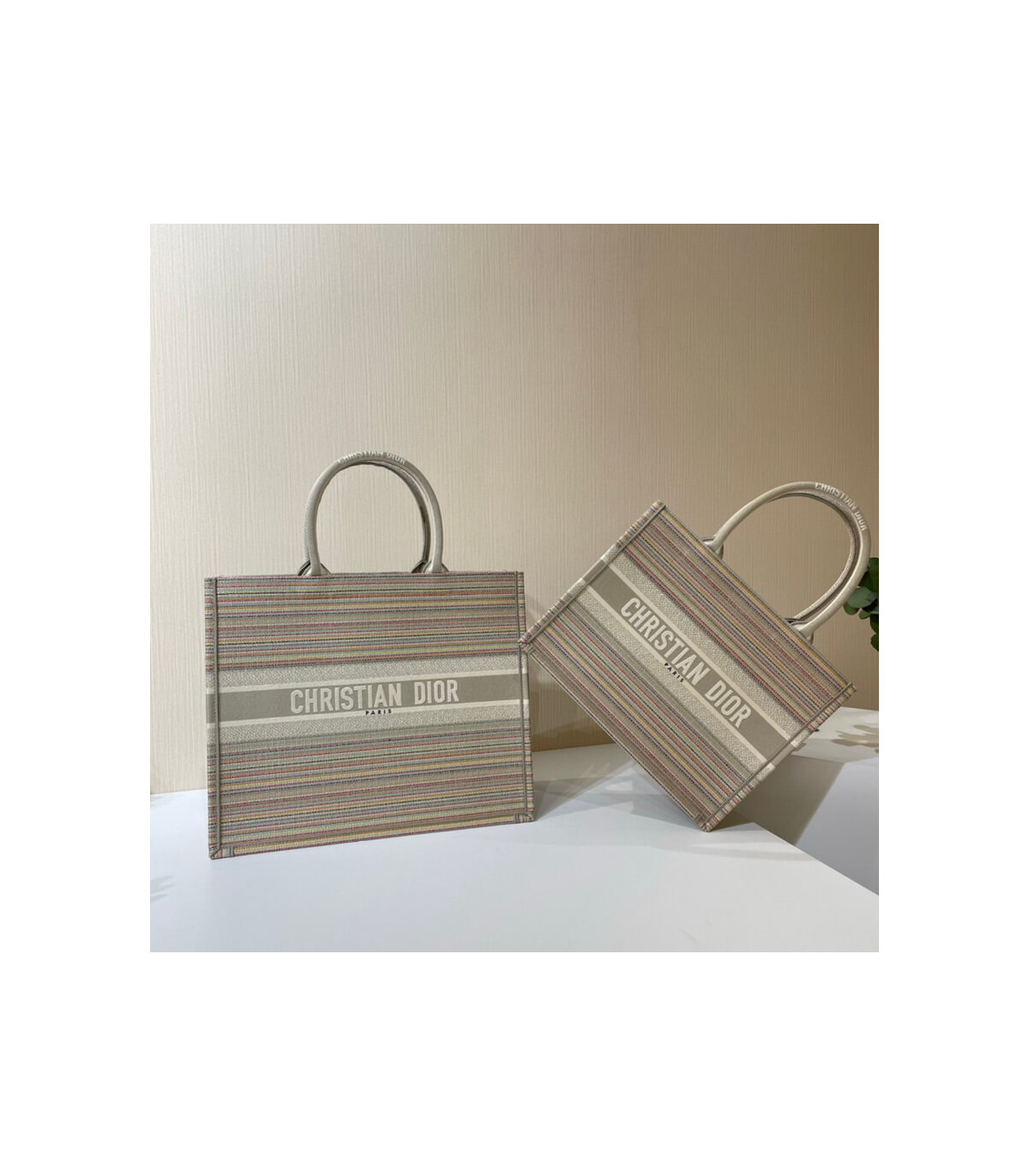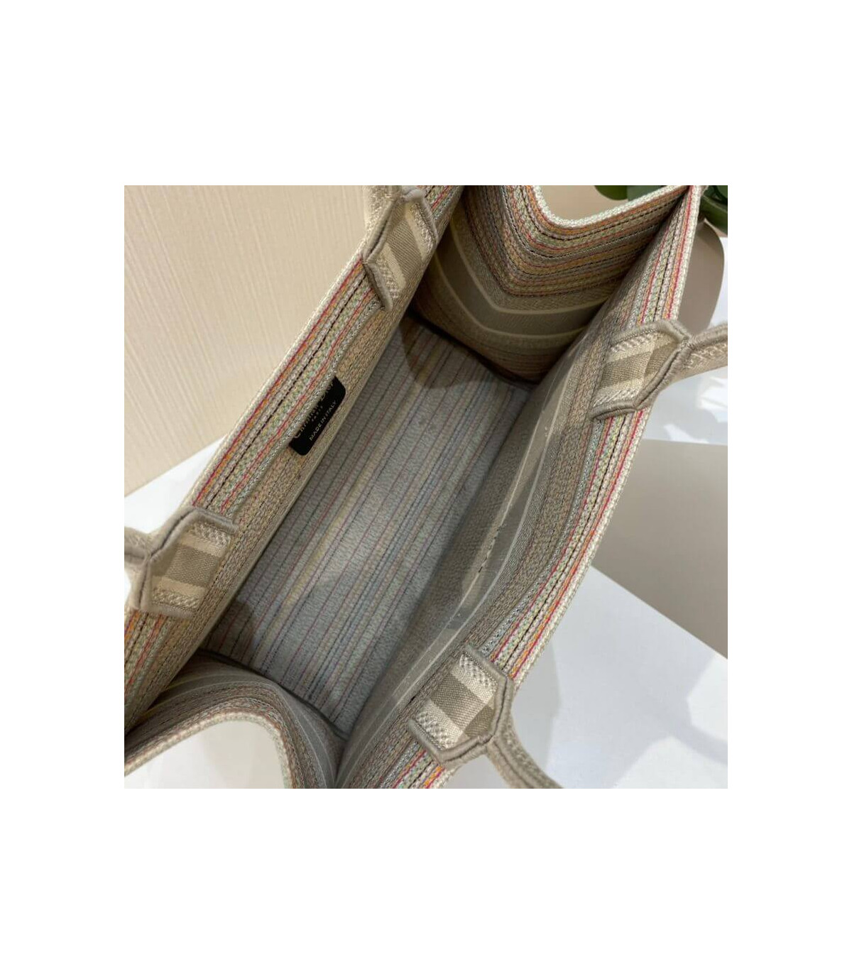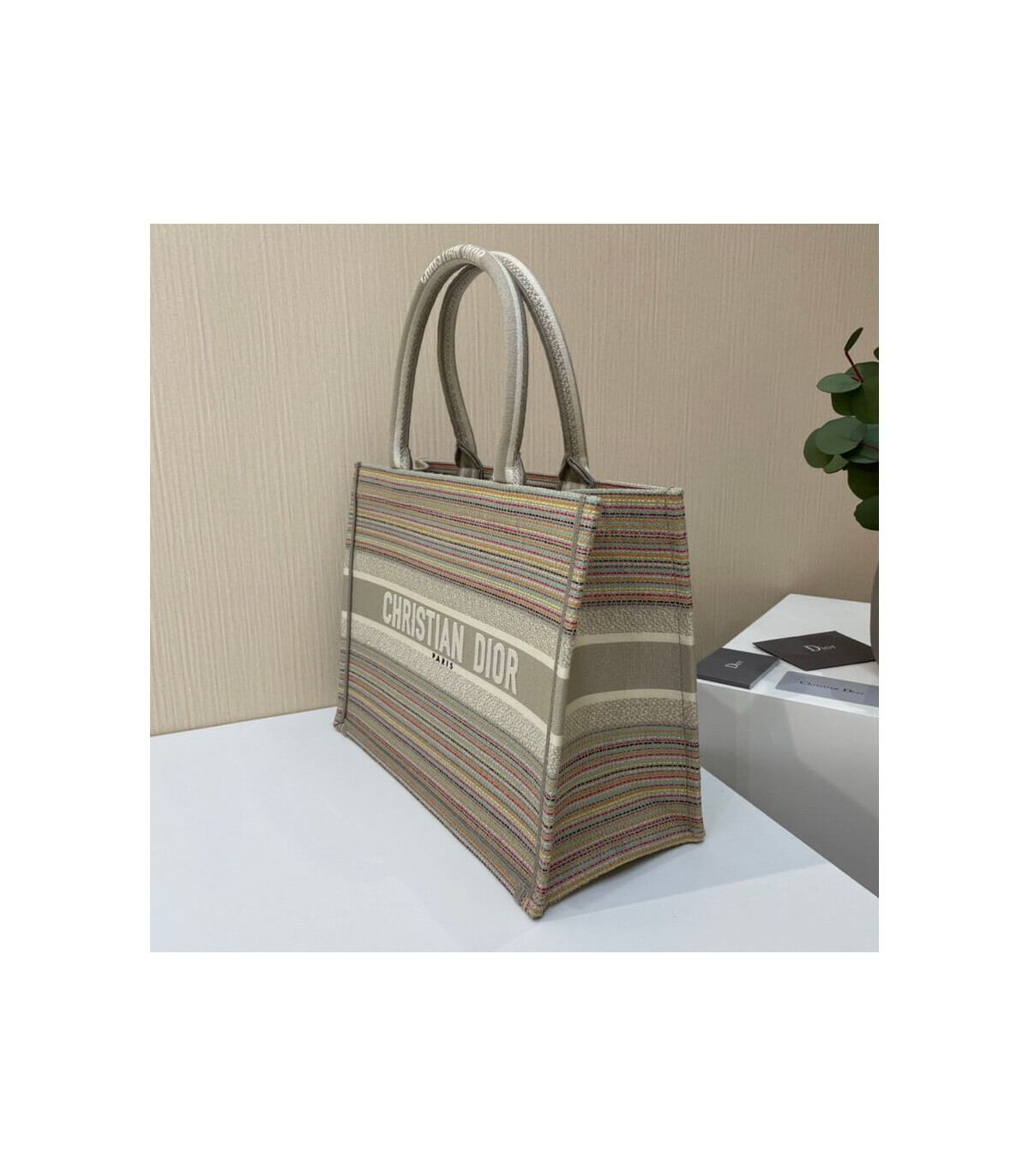Christian Dior Small Book Tote Multicolor Stripes Embroidery