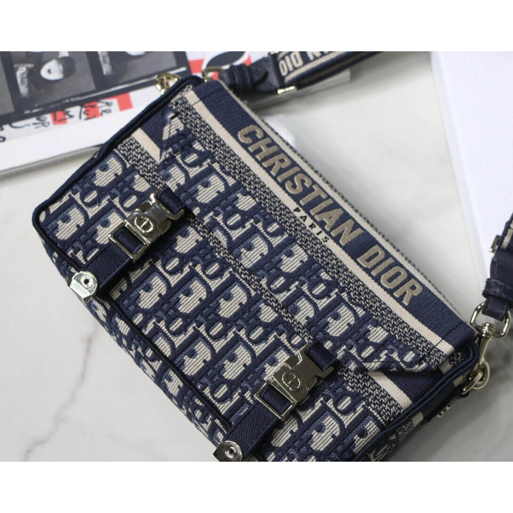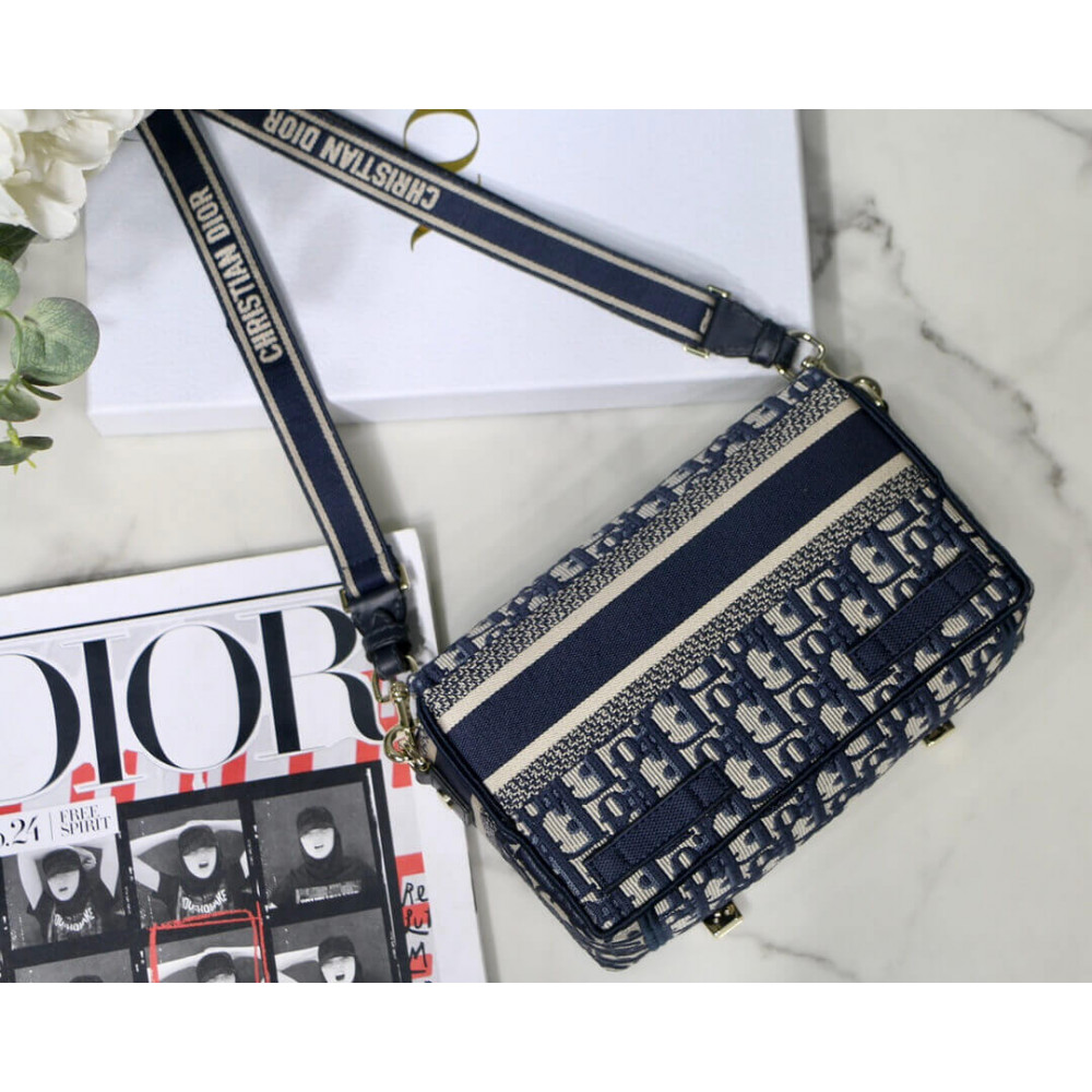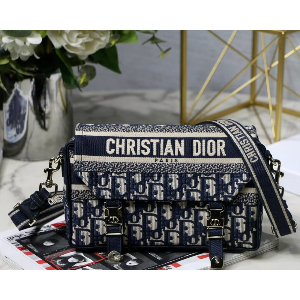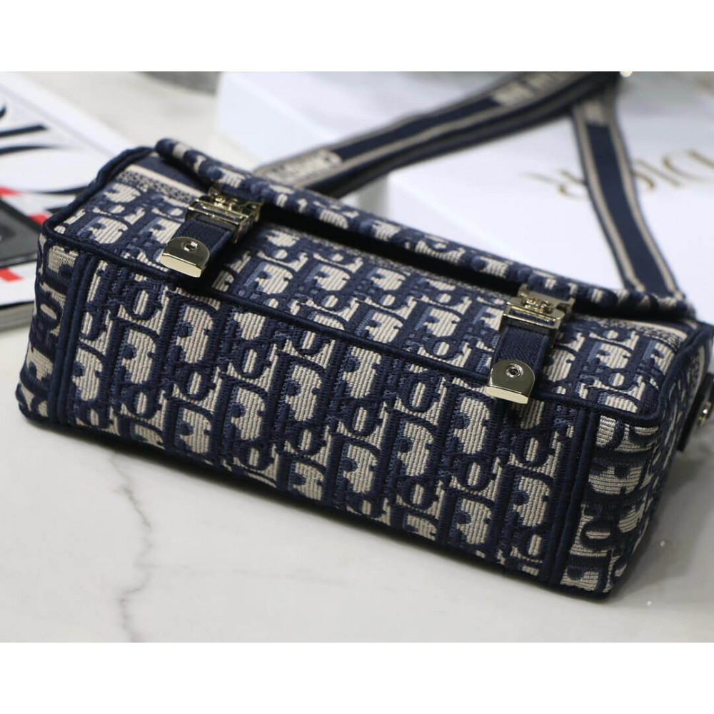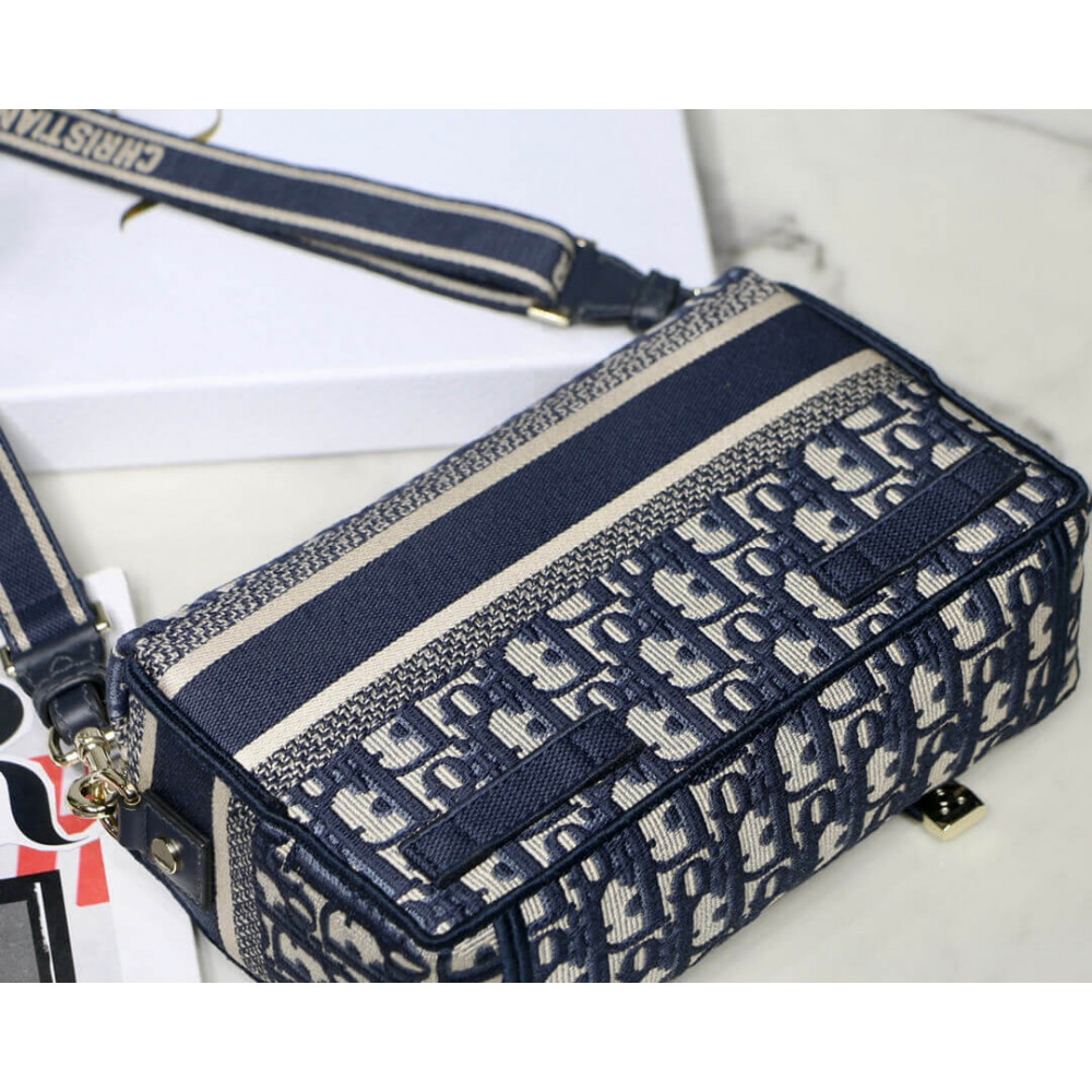 • Christian Dior Small DiorCamp Bag Blue Oblique Embroidery