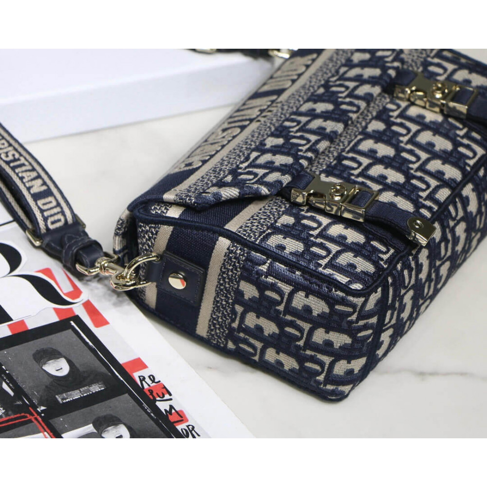 Christian Dior Small DiorCamp Bag Blue Oblique Embroidery