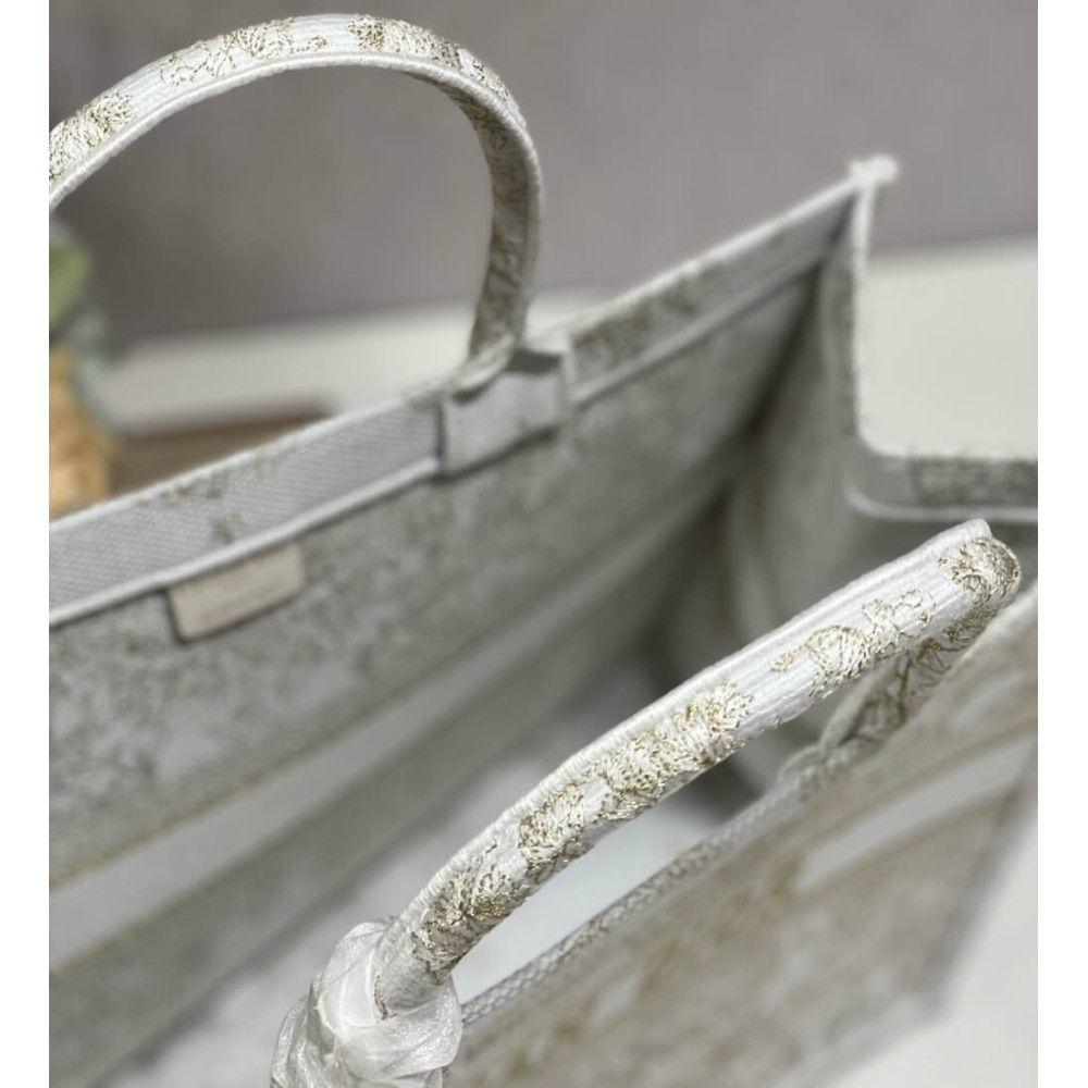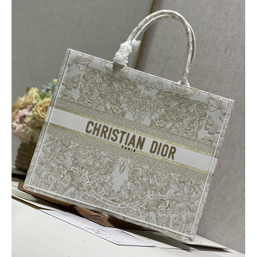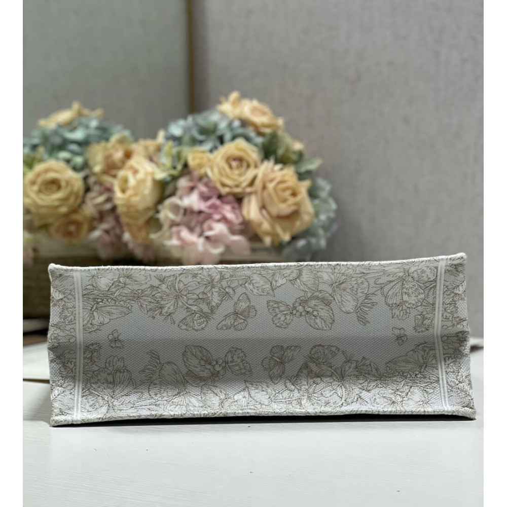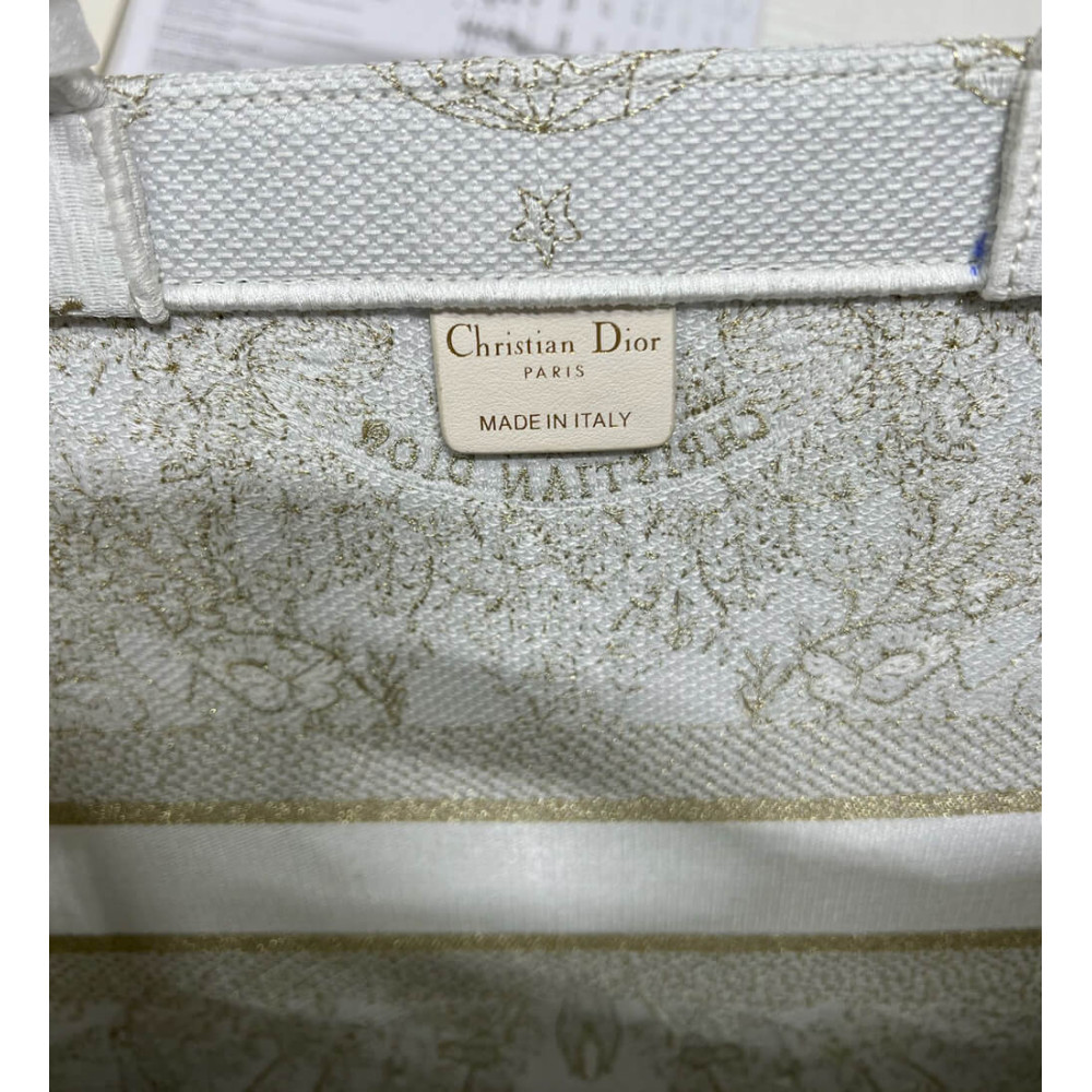 Dior Book Tote Gold-Tone and White Butterfly Around The World Embroidery