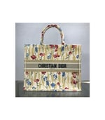 • Dior Book Tote in Beige Multicolor Hibiscus Metallic Thread Embroidery