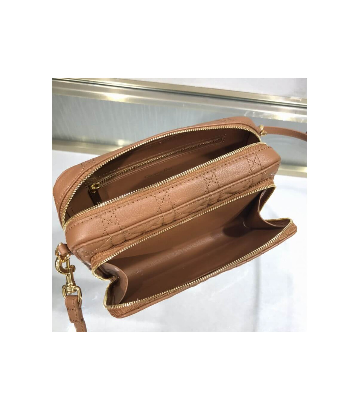 The Dior Caro double pouch, both spacious and compact, is ideal for daily life. Crafted in black calfskin, it is embellished with hallmark Cannage topstitching and features two large compartments, a zipped pocket and two card slots to hold all the essentials. The removable and adjustable strap allows it to be carried by hand, worn over the shoulder or crossbody.