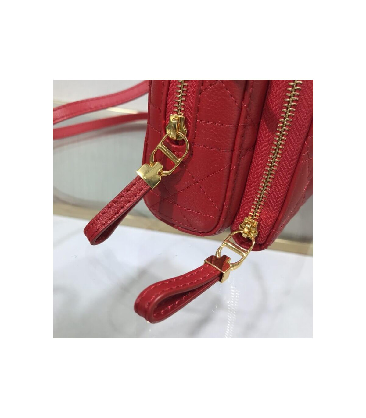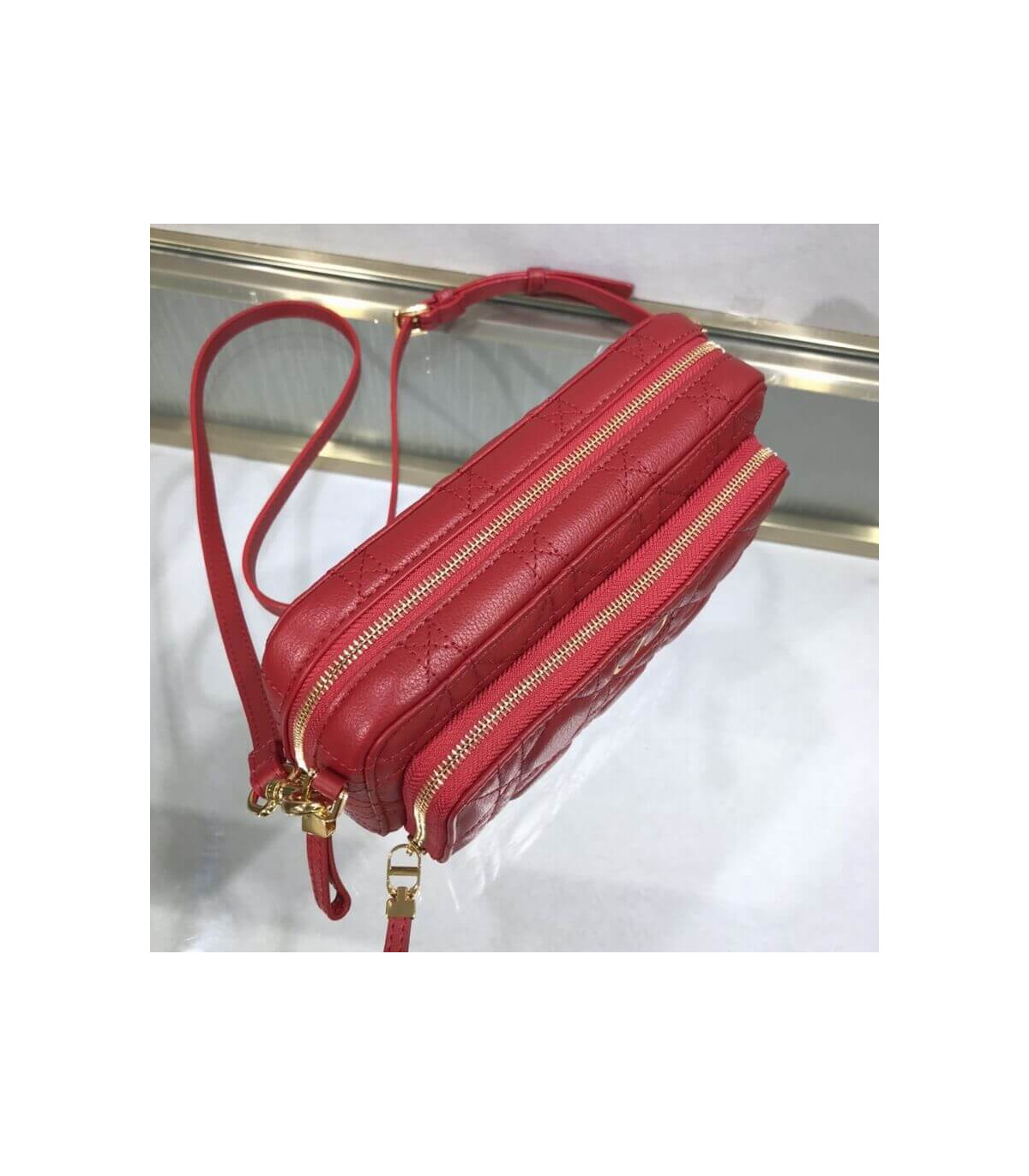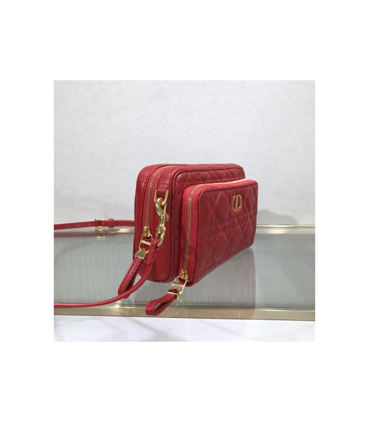 Dior Caro Double Pouch Red Supple Cannage Calfskin