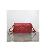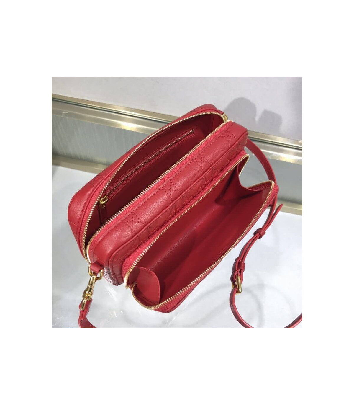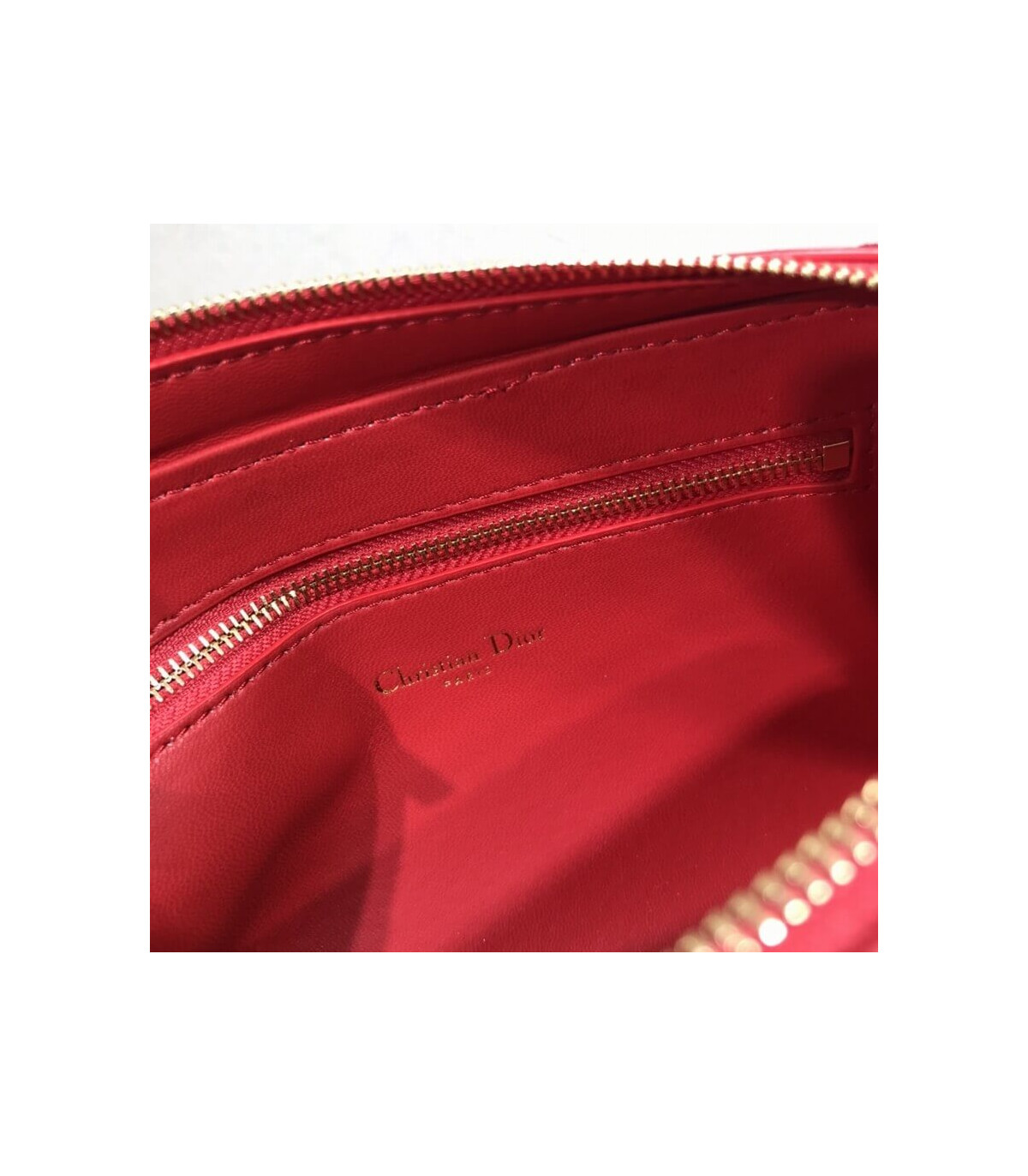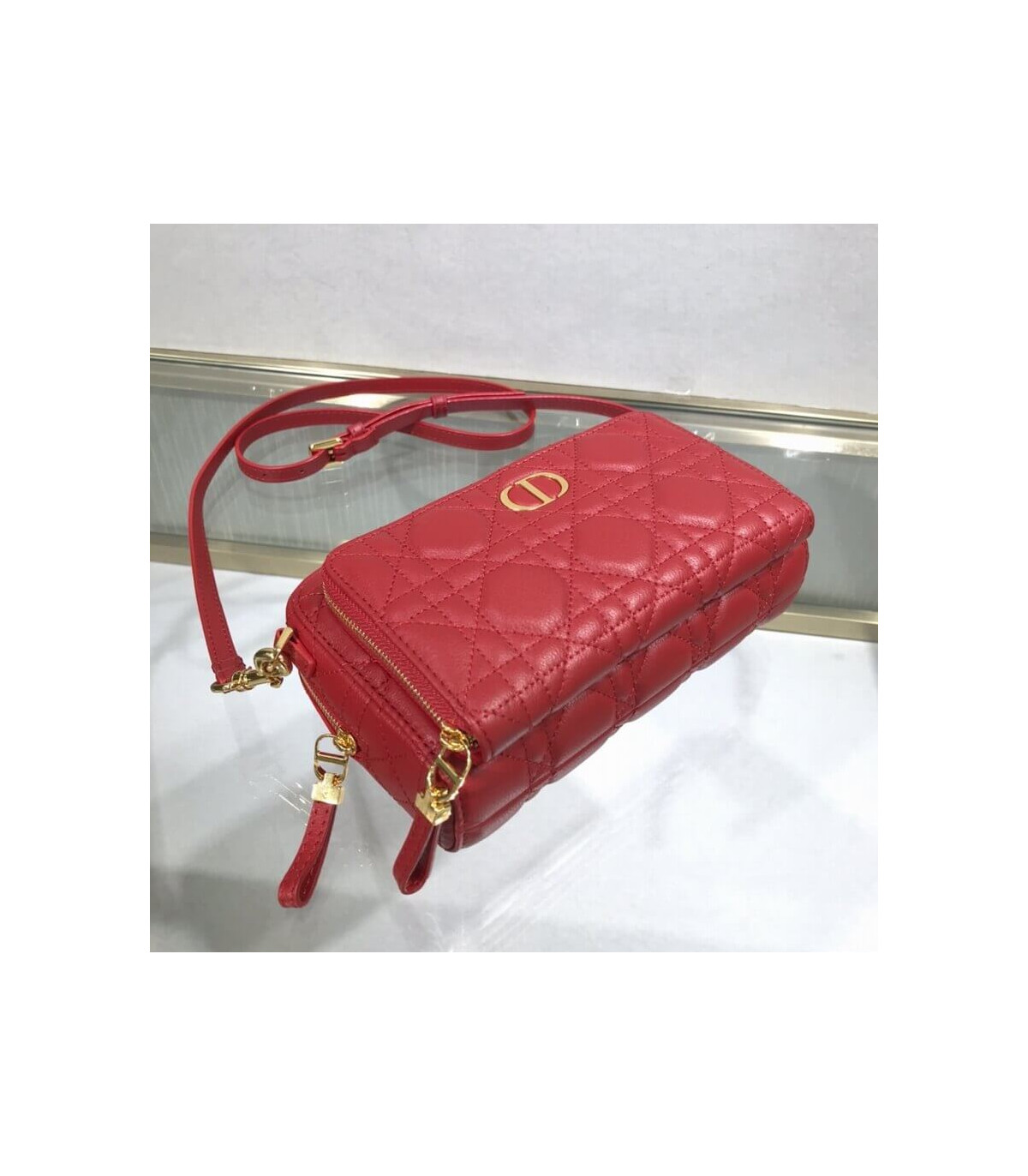 Dior Caro Double Pouch Red Supple Cannage Calfskin