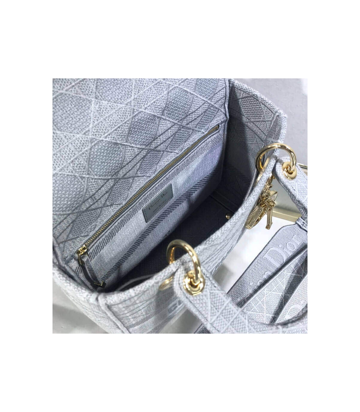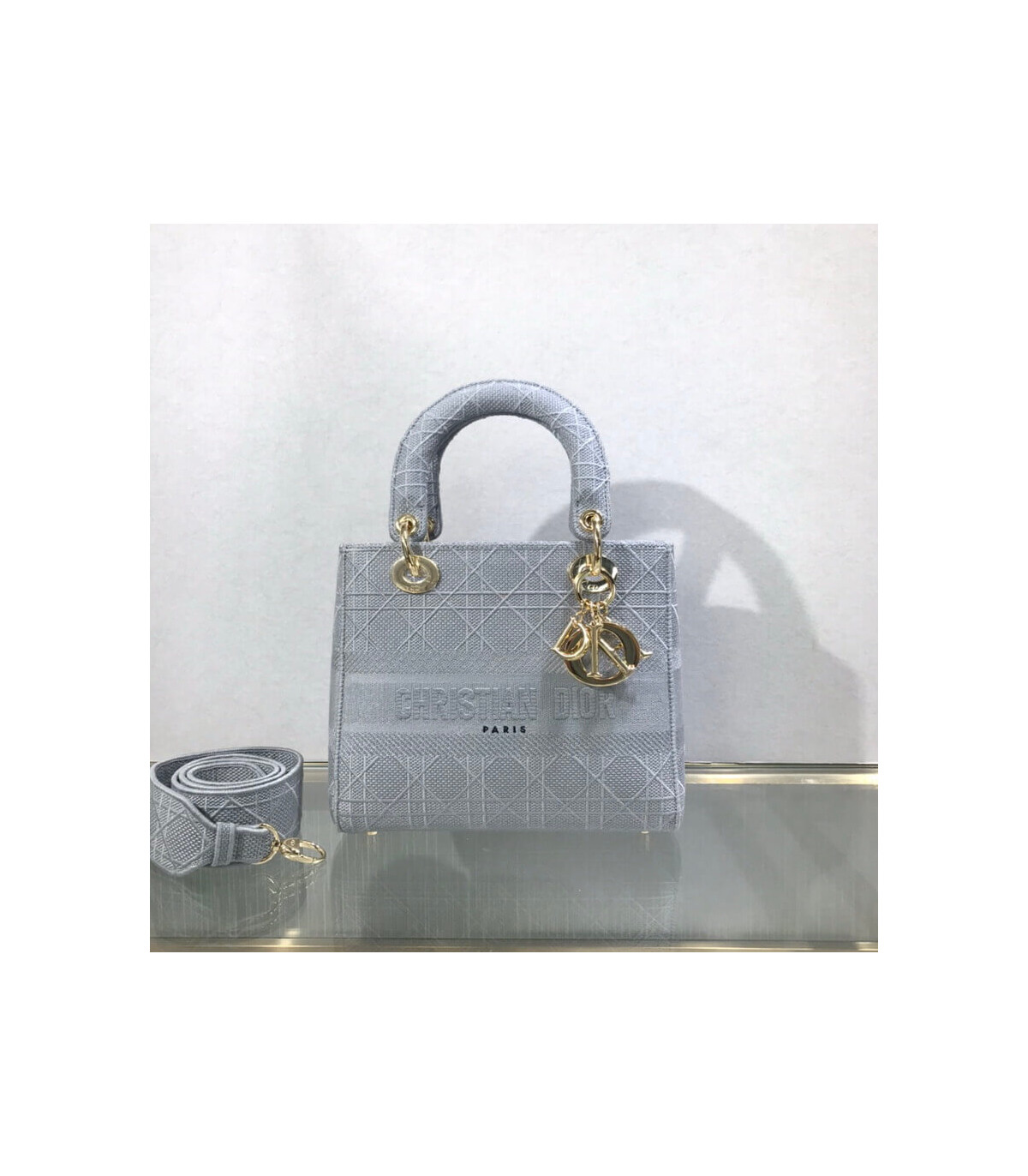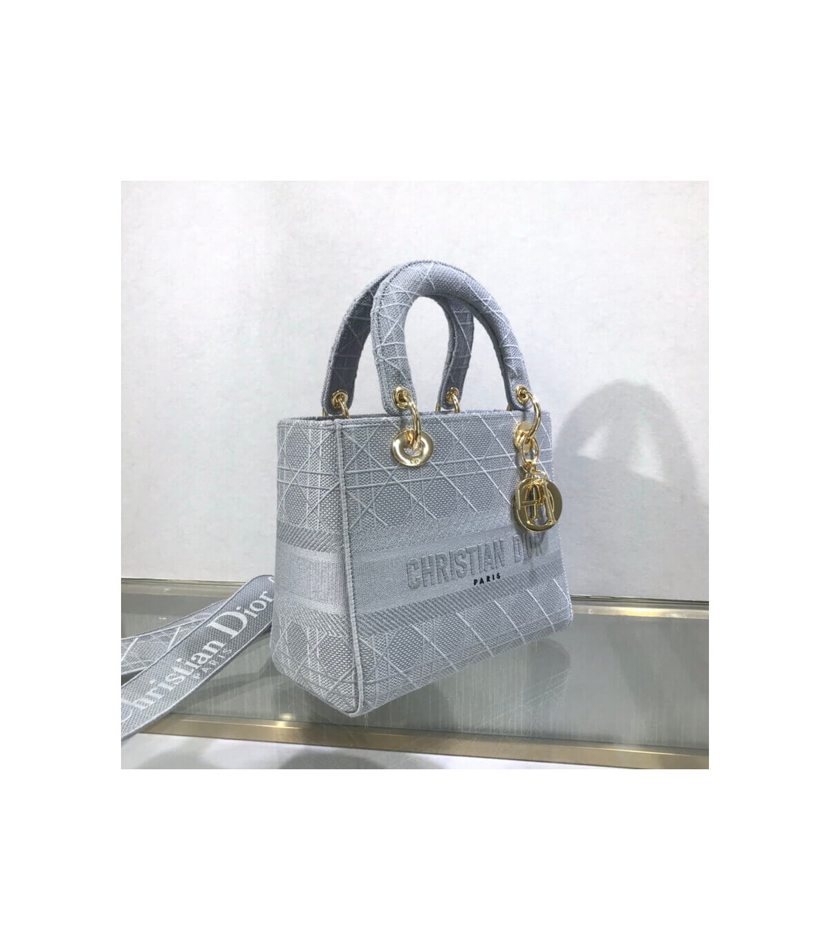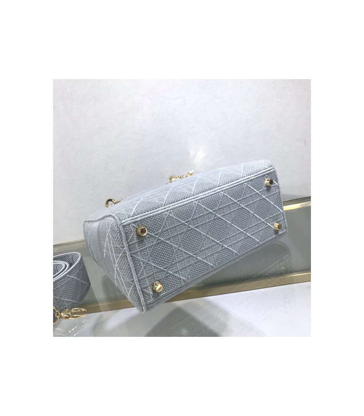 Dior Medium Lady D-Lite Bag Gray Cannage Embroidered