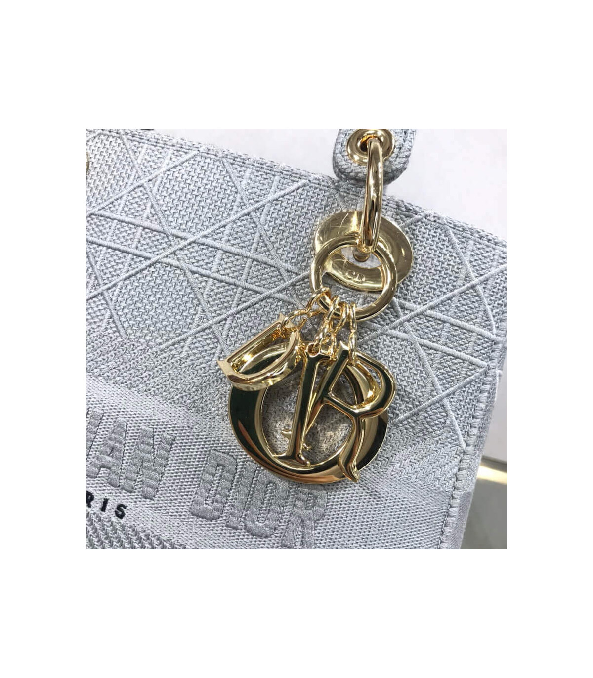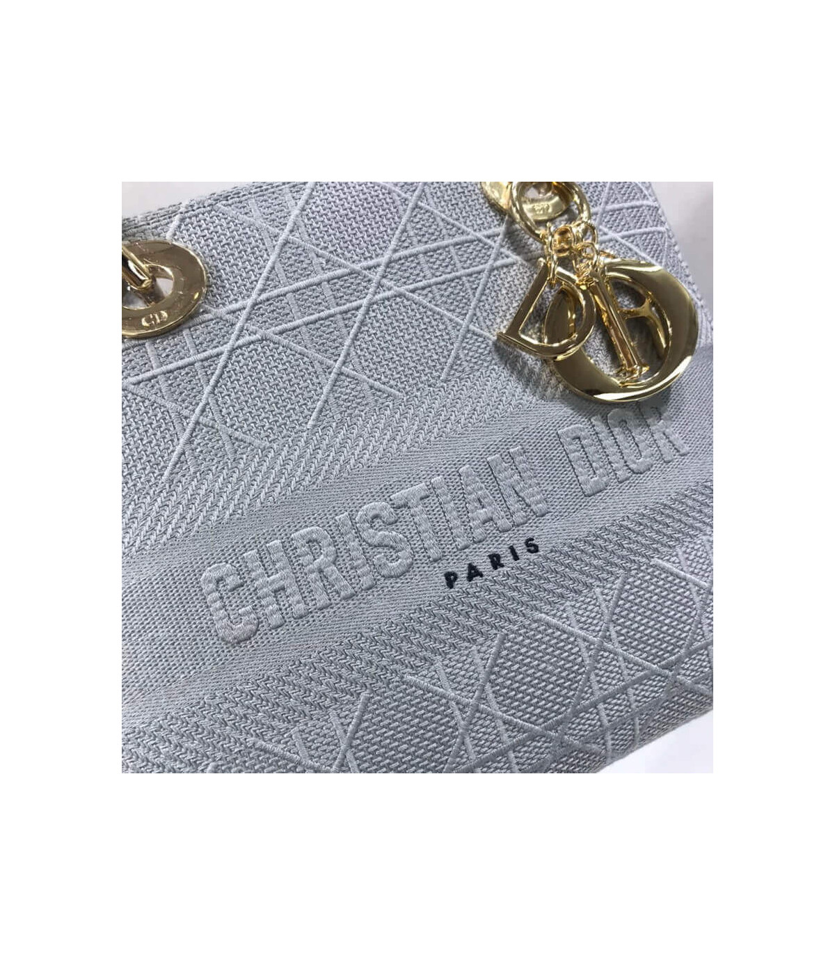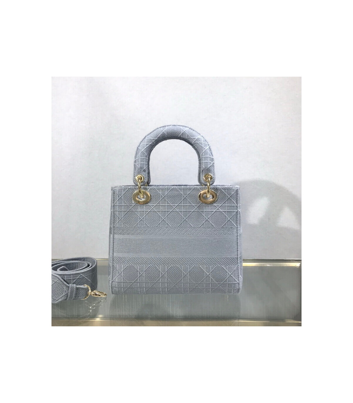 Dior Medium Lady D-Lite Bag Gray Cannage Embroidered