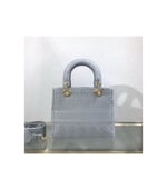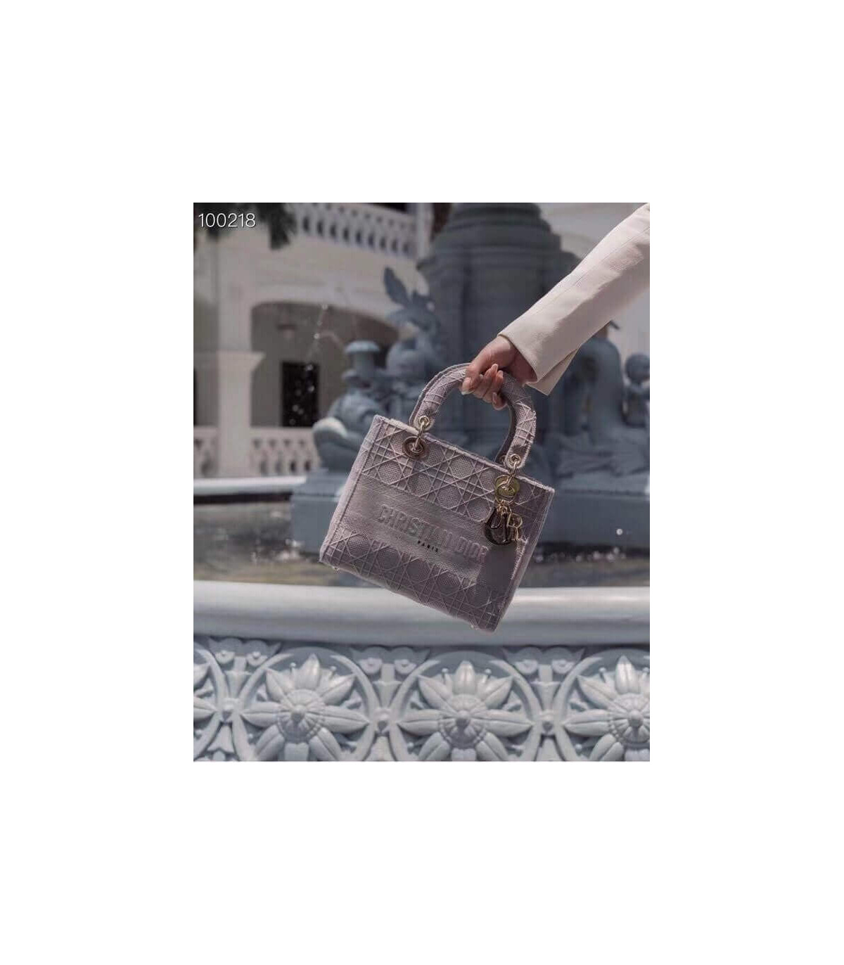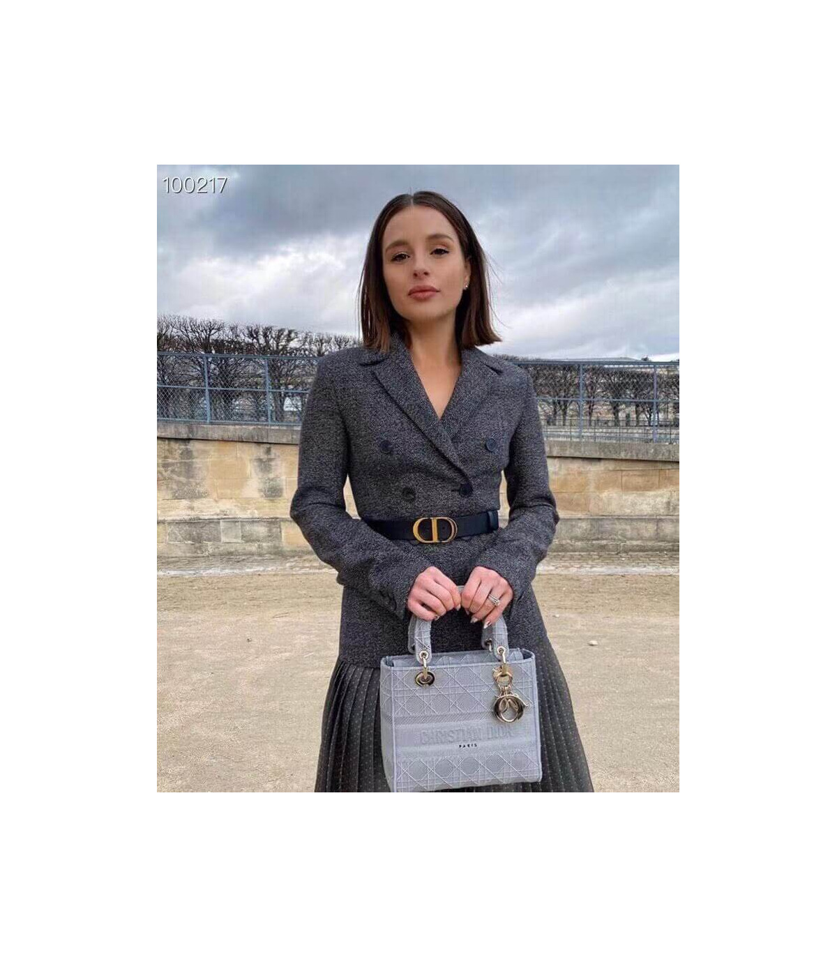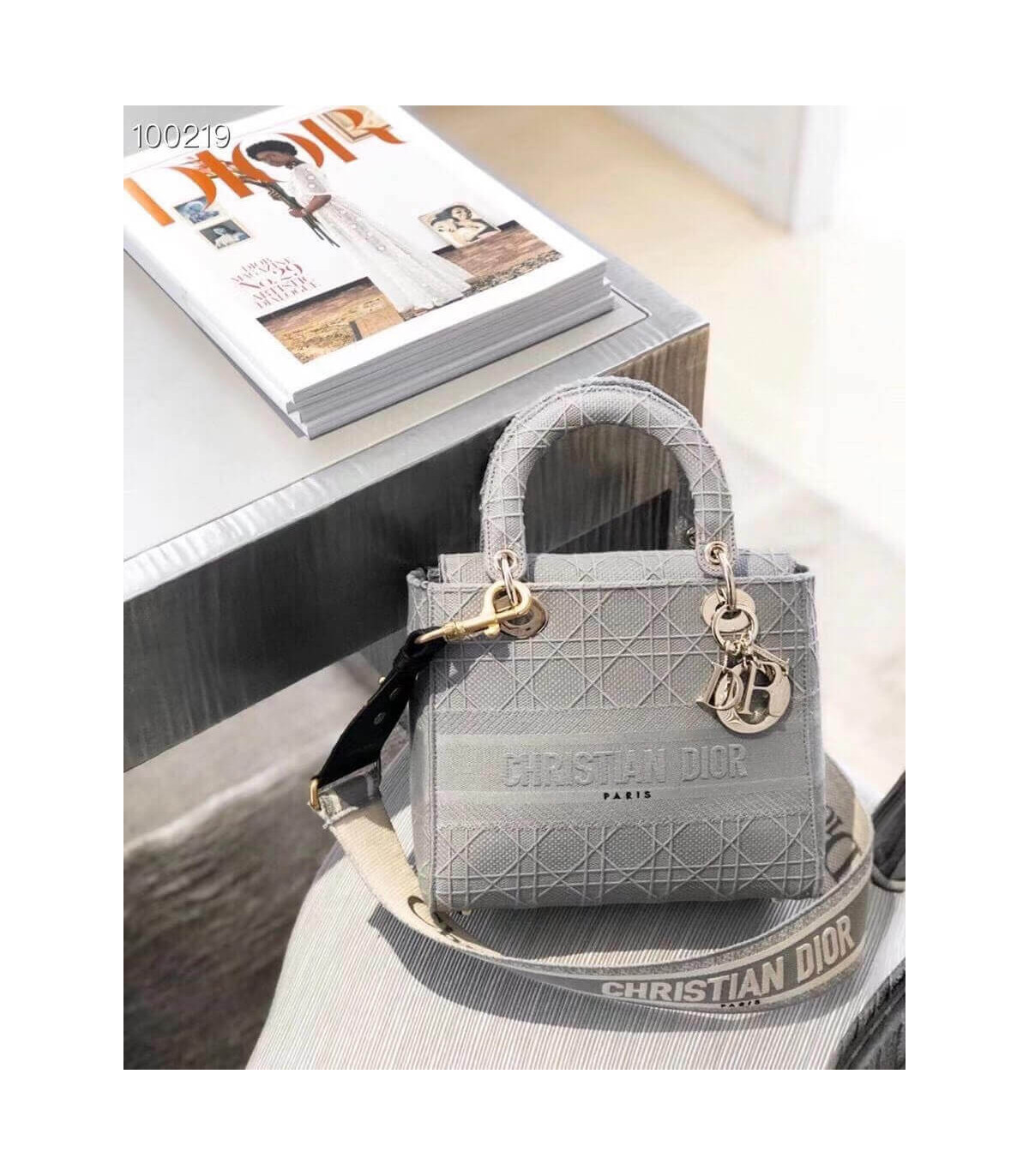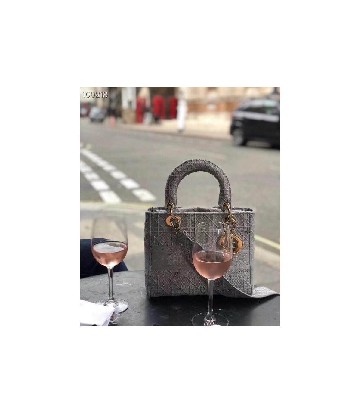 Dior Medium Lady D-Lite Bag Gray Cannage Embroidered