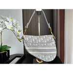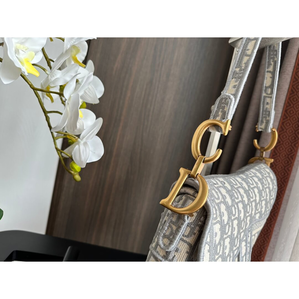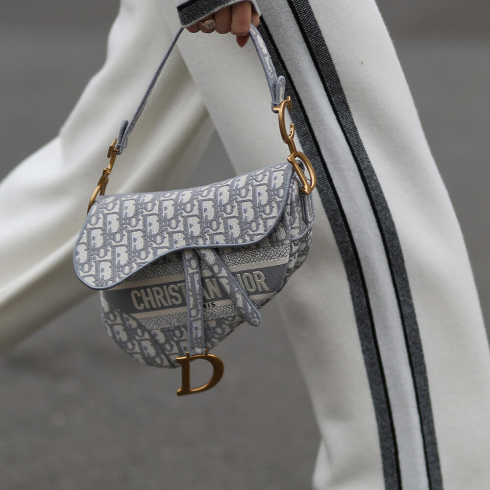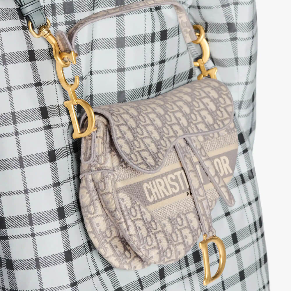 Maria Grazia Chiuri brings a fresh update to the iconic Saddle bag. The design is fully embroidered with the House’s hallmark blue Dior Oblique motif. The legendary style features a Saddle flap and a D stirrup clasp on a magnetic pull, as well as an antique gold-finish metal CD signature on each side of the handle. The bag can be carried by hand or worn over the shoulder and may be customized with different shoulder straps.
