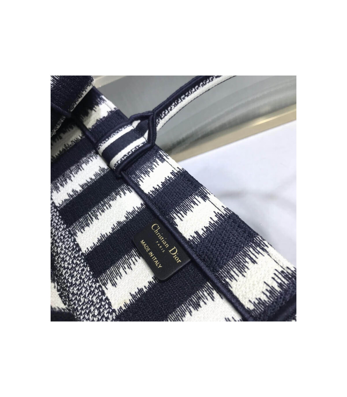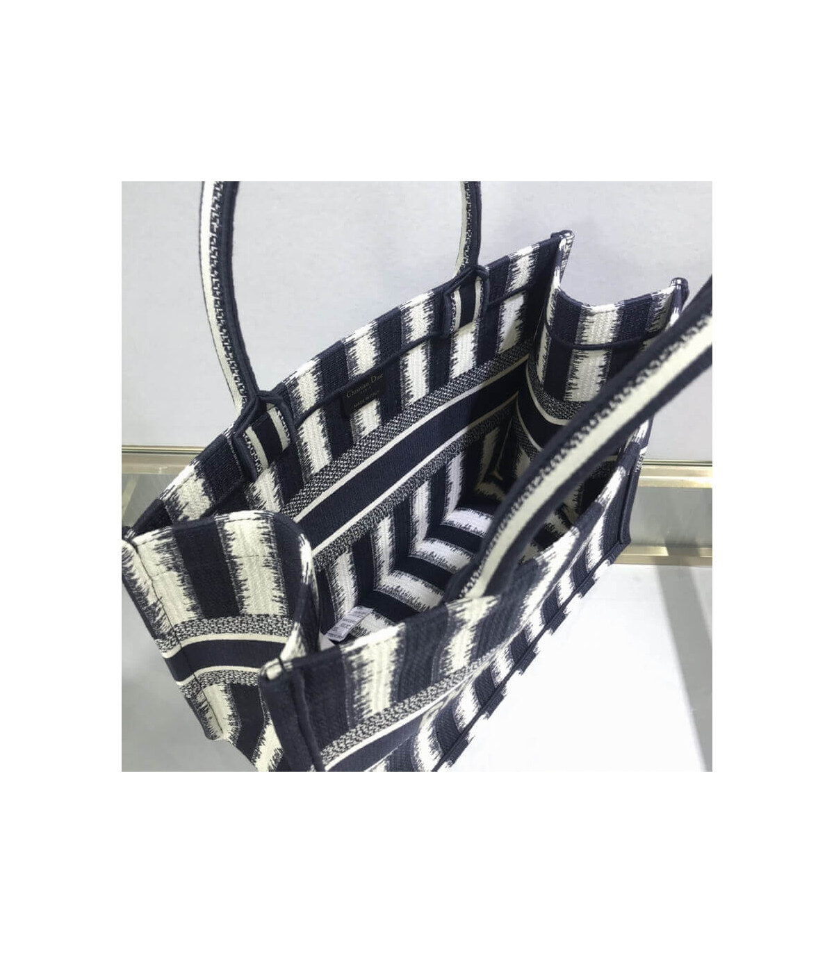 Dior Small Book Tote D-Stripes Embroidery