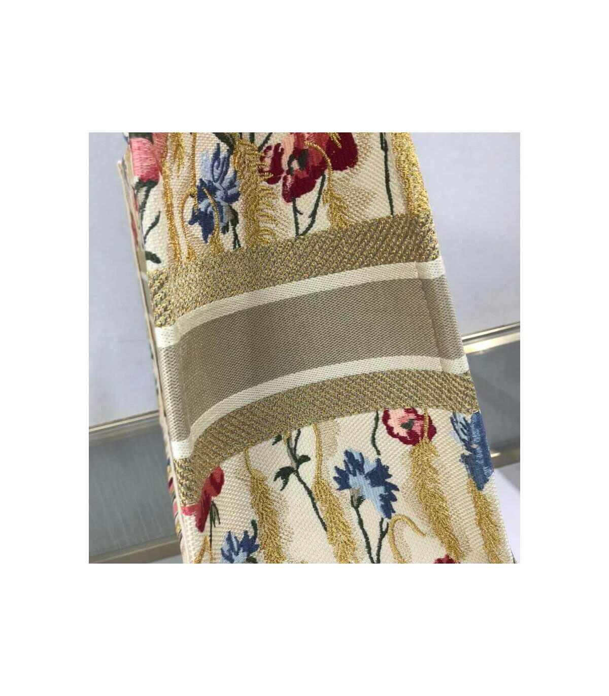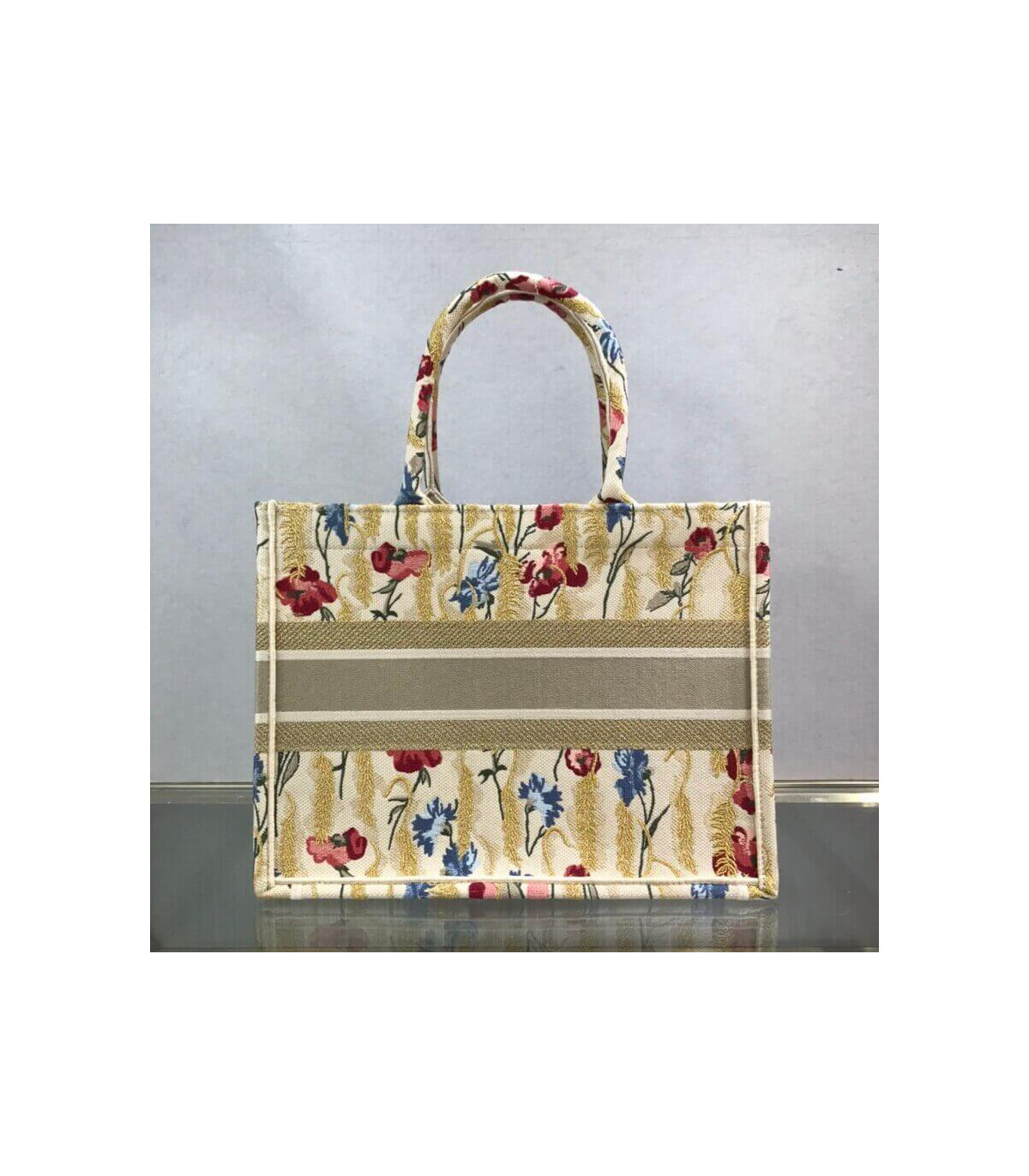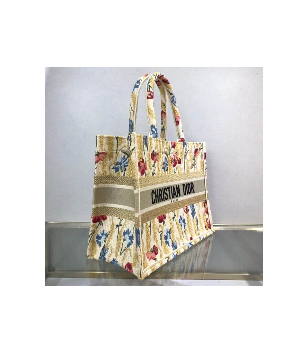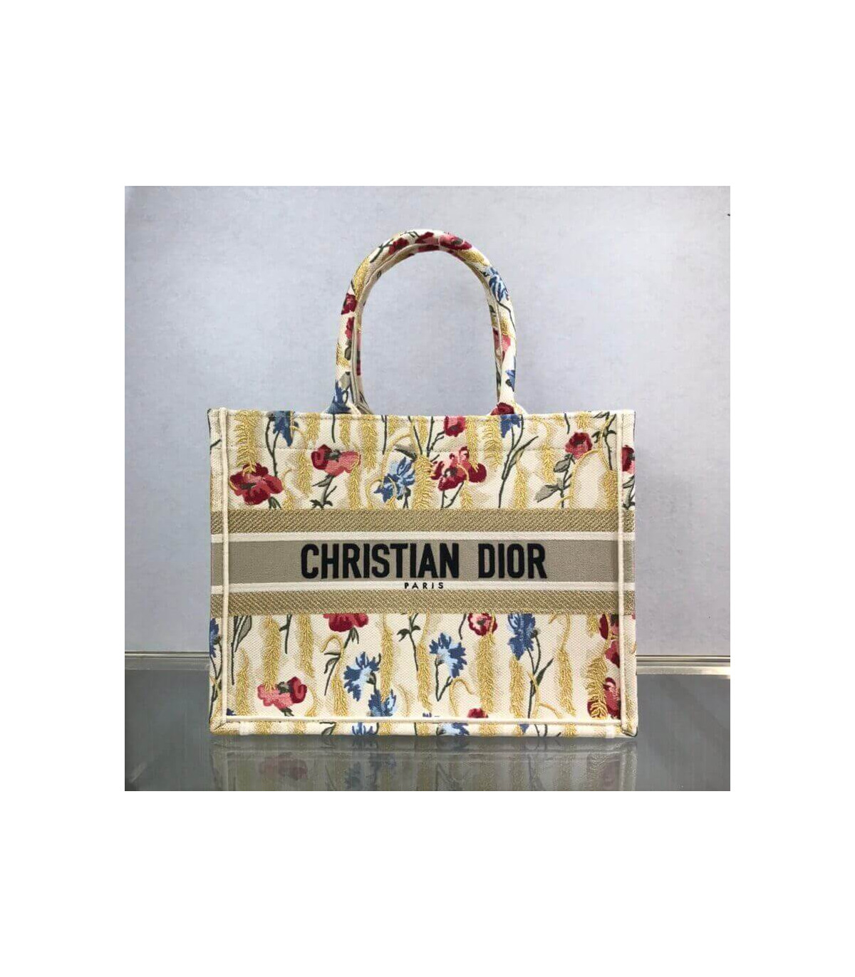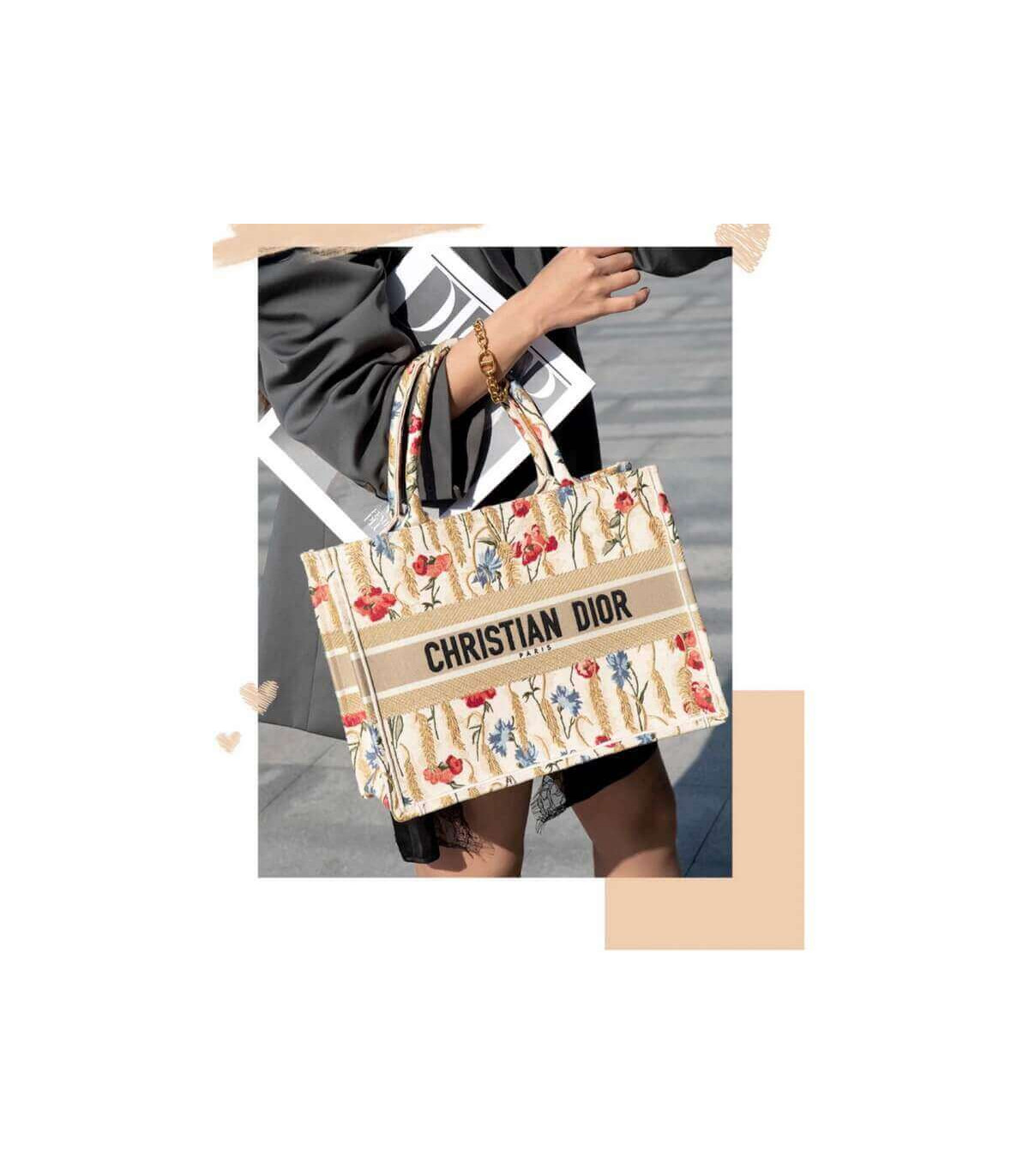The Dior Book Tote, an original style introduced by Creative Director Maria Grazia Chiuri, has become a staple of the Dior aesthetic. This small beige style, fully embroidered with the multicolor Dior Hibiscus motif accented with metallic thread, is reminiscent of bucolic Apulian landscapes, a central theme of the collection. Adorned with the ‘Christian Dior’ signature, the Dior Book Tote exemplifies the House’s signature savoir-faire and can be paired with other Dior Hibiscus creations from the collection.